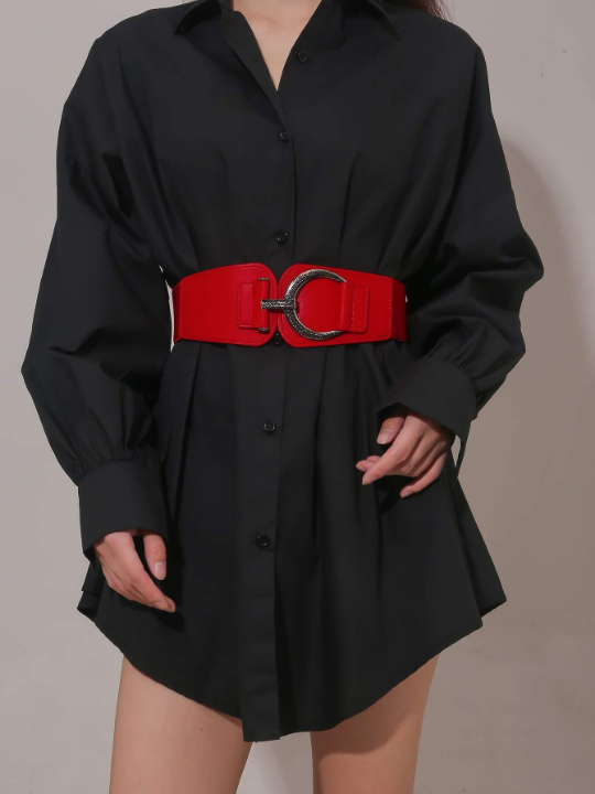 Color: Red Pattern Type: Plain Style: Casual Buckle Type: Symmetrical Buckle Belts Width: Wide Belt Type: Wide Belts Stretch: Medium Stretch Material: PU Leather Composition: 80% Polyester, 20% Polyurethane Buckle Element: Other Strap Element: Other