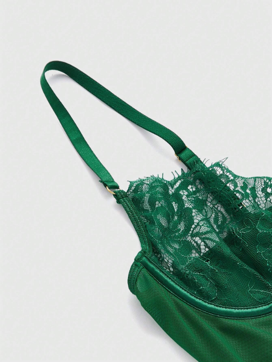 Women's Lace & Mesh Combining, Underwire Decor, Open Crotch Bodysuit Underwear
