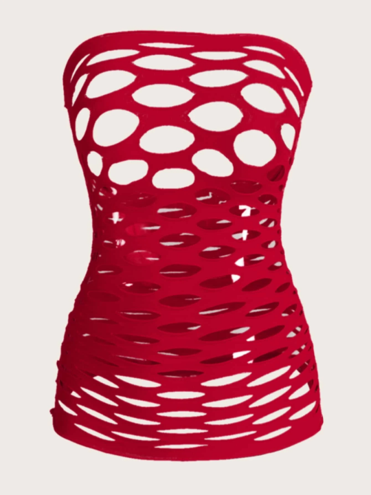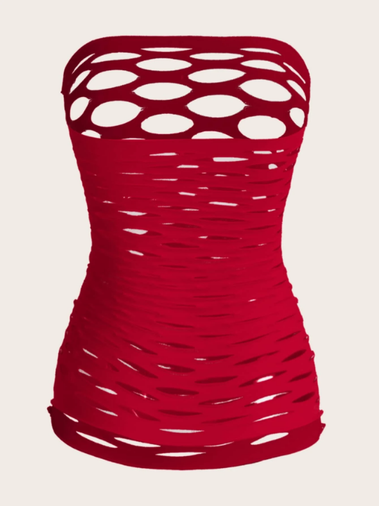 Color: Red Neckline: Off the Shoulder Type: Babydolls Pattern Type: Plain Details: Cut Out Fabric: High Stretch Material: Knitted Fabric Composition: 95% Polyamide, 5% Elastane Care Instructions: Hand wash,do not dry clean Pockets: No Sheer: No