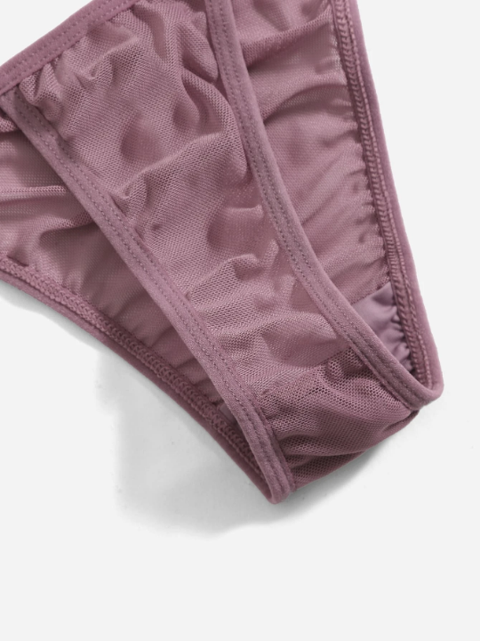 Color: Purple Type: Robes Pattern Type: Plain Style: Romantic-Romantic Panty Type: V-strings Number of Pieces: 3 Piece Set Rise: Low Rise Details: Contrast Lace Fabric: Medium Stretch Care Instructions: Hand wash,do not dry clean Sheer: Semi-Sheer Dresses & Pants Material: Mesh Fabric Dresses & Pants Composition: 95% Polyester, 5% Elastane
