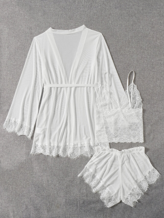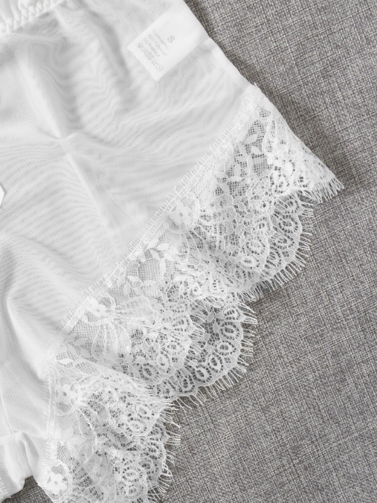 Color: White Type: Robes Pattern Type: Plain Style: Romantic-Romantic Bra Type: Longline, Bralettes Panty Type: Boyshorts Number of Pieces: 4 Piece Set Rise: Mid Rise Details: Contrast Lace, Sheer, Belted, Scallop Body Accessories Material: Fabric Fabric: Medium Stretch Care Instructions: Hand wash,do not dry clean Sheer: Semi-Sheer Body Accessories Composition: 95% Polyester, 5% Elastane