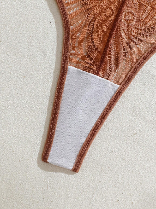 Color: Brown Neckline: Spaghetti Strap Type: Sexy Sets Pattern Type: Plain Bra Type: Bralettes Panty Type: Thongs Number of Pieces: 2 Piece Set Rise: Low Rise Details: Contrast Lace, Contrast Mesh, Sheer Fabric: Medium Stretch Care Instructions: Hand wash,do not dry clean Tops Material: Fabric Tops Composition: 90% Polyamide, 10% Elastane