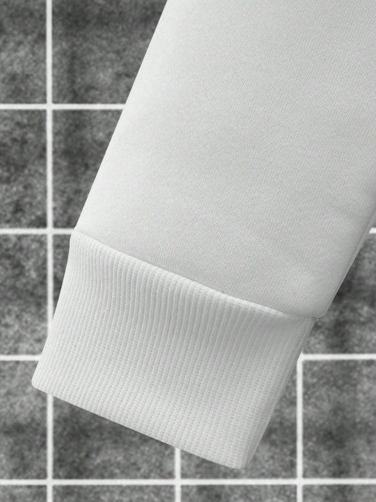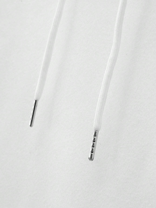 Color: White Style: Casual Type: Pullovers Pattern Type: Letter Details: Drawstring, Pocket Neckline: Hooded Sleeve Length: Long Sleeve Sleeve Type: Drop Shoulder Length: Regular Fit Type: Regular Fit Fabric: Slight Stretch Material: Fabric Composition: 100% Polyester Care Instructions: Machine wash or professional dry clean Temperature: Spring/Fall 18-25℃/63-77℉ Sheer: No