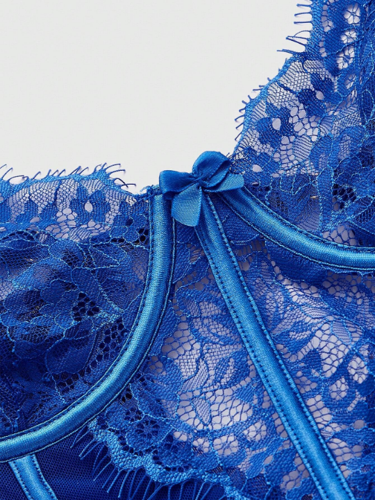 Color: Royal Blue Neckline: Spaghetti Strap Type: Teddies Pattern Type: Colorblock Style: Sexy Details: Contrast Lace, Sheer, Ruffle Fabric: Medium Stretch Material: Fabric Composition: 95% Polyester, 5% Elastane Care Instructions: Machine wash, do not dry clean Sheer: No