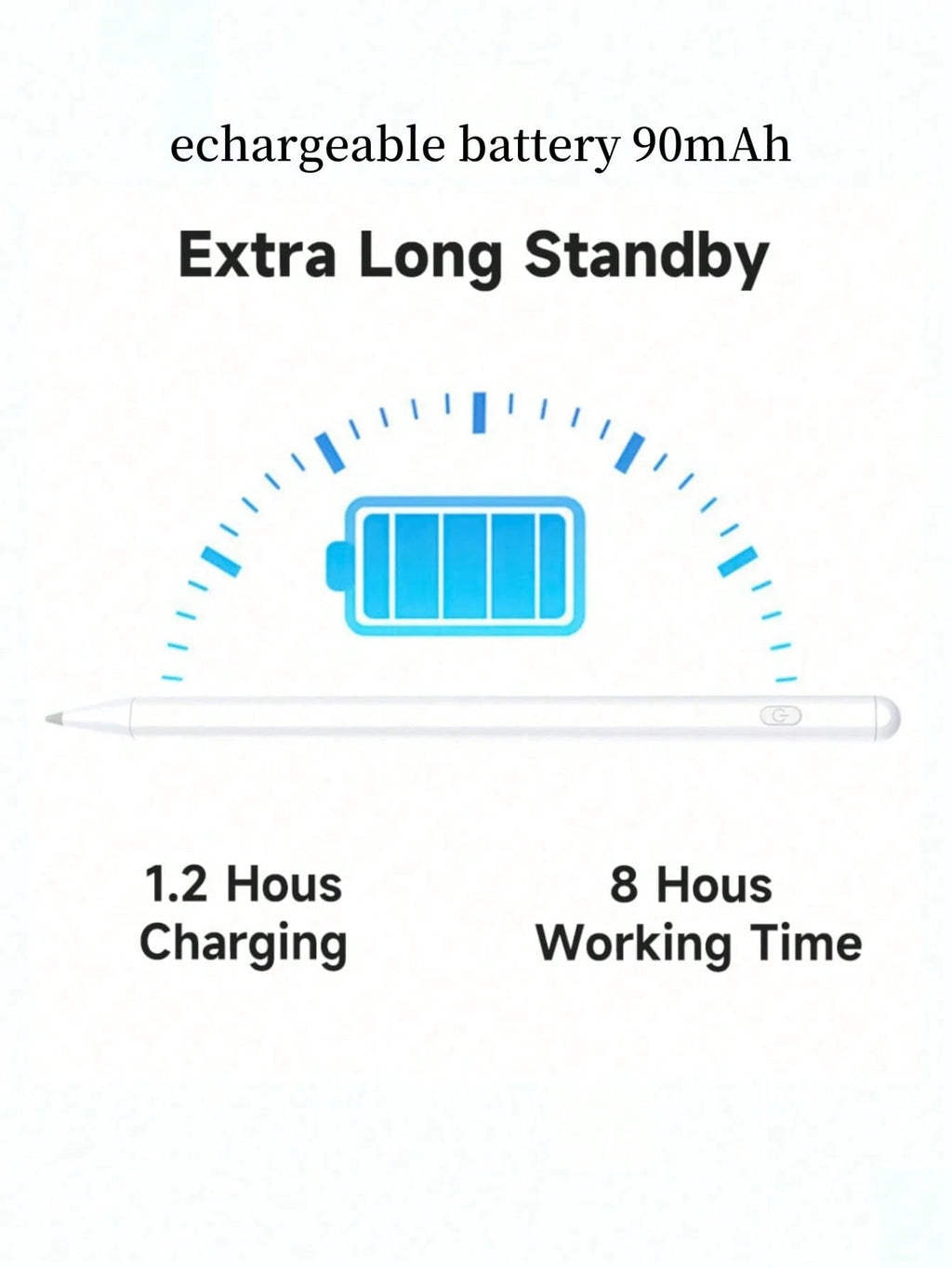 [Rechargeable Battery] Ain't nobody got time for disposable batteries. This stylus comes with a rechargeable battery that lasts for ages, so you can stay creative all day long without having to worry about running out of juice. Just plug it in, let it charge, and you're good to go. It's eco-friendly and budget-friendly – win-win! Enjoy more time creating and less time worrying about the power life of your stylus.