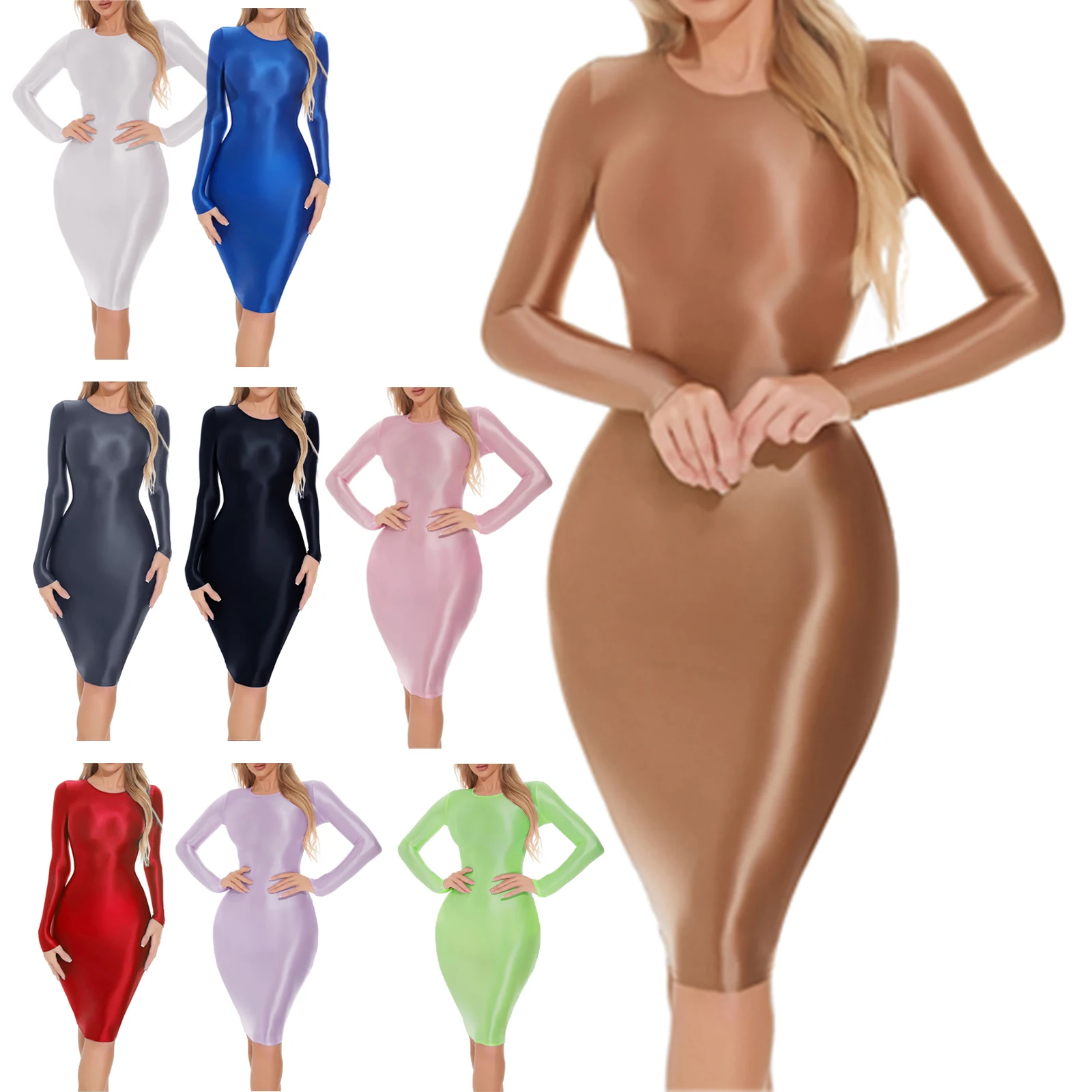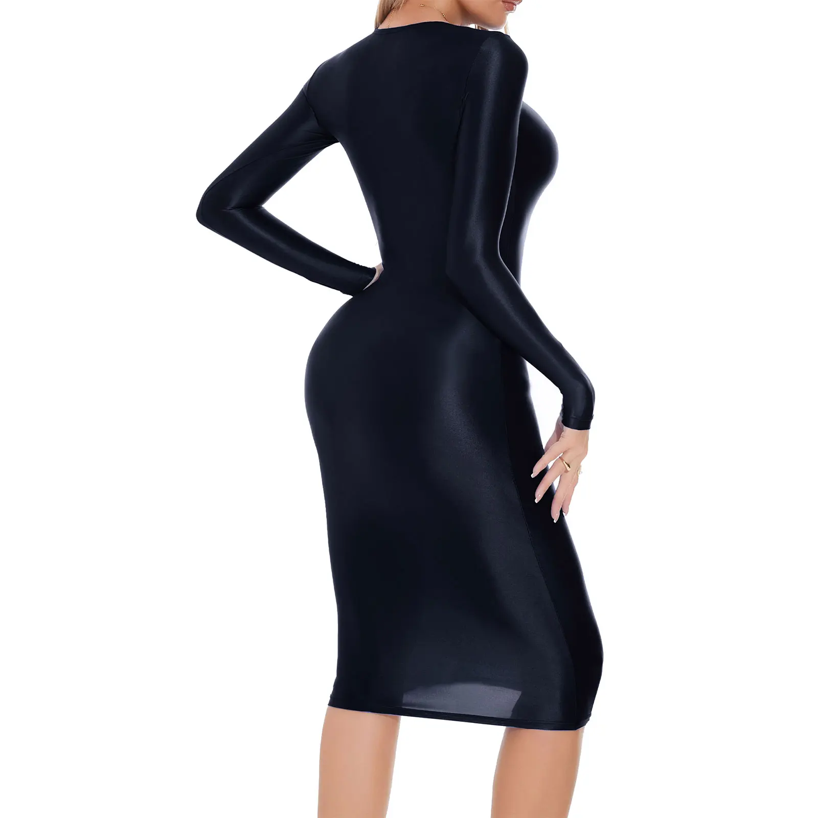 - Model Number : Womens Oil Glossy Long Sleeve Bodycon Dress