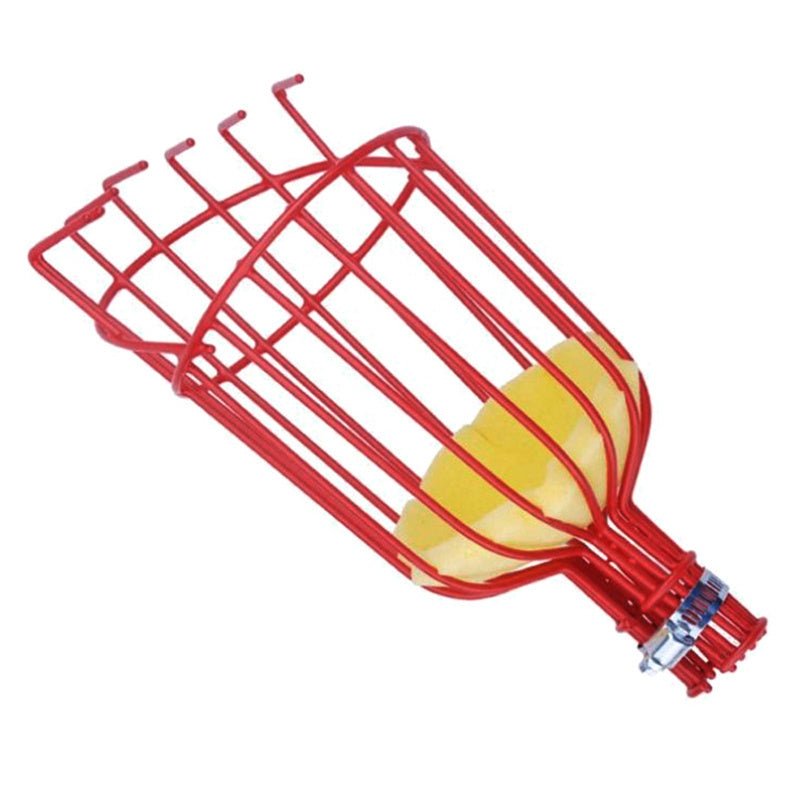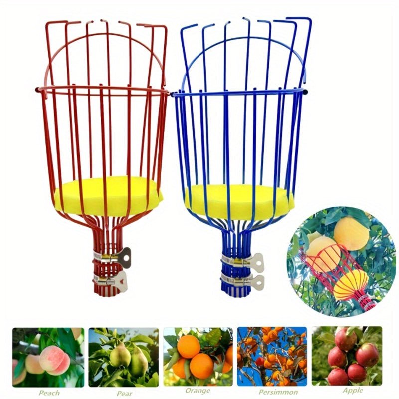 1-Pack Deep Basket Fruit Picker Head - Heavy-Duty Aluminum & Iron Construction, Red/Blue, No Electricity Needed with Sponge-Lined Basket & Steel Forceps for Gentle Apple Peach Picking - Garden, Farm, Orchard Tool, Garden Harvesting, Easygrip Handle, Durab