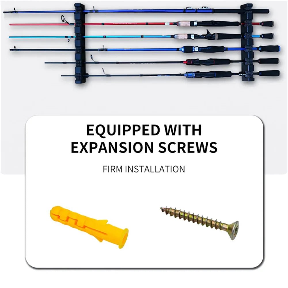 1Pcs Fishing Rod Storage Rack 6 Holes Wall-mounted Fishing Pole Holder Bracket Vertical & Horizontal Display Fixed Frame