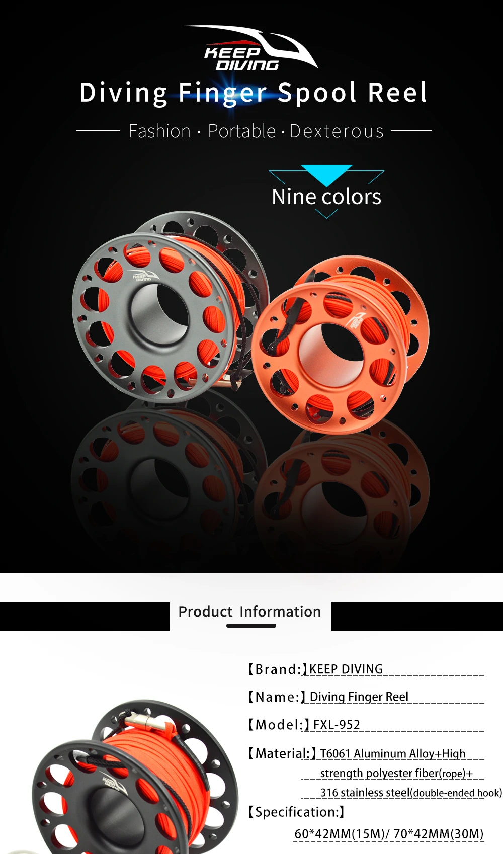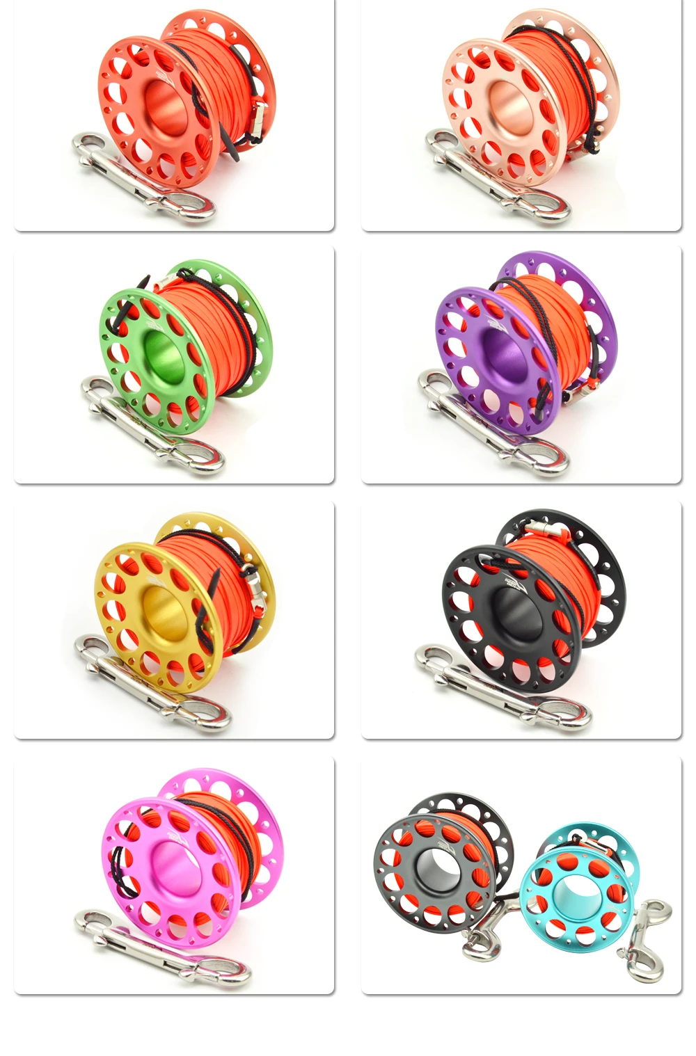 2025 New Summer 15M/30M Scuba Diving Aluminum Alloy Spool Finger Reel with Stainless Steel double ended hook SMB Equipment