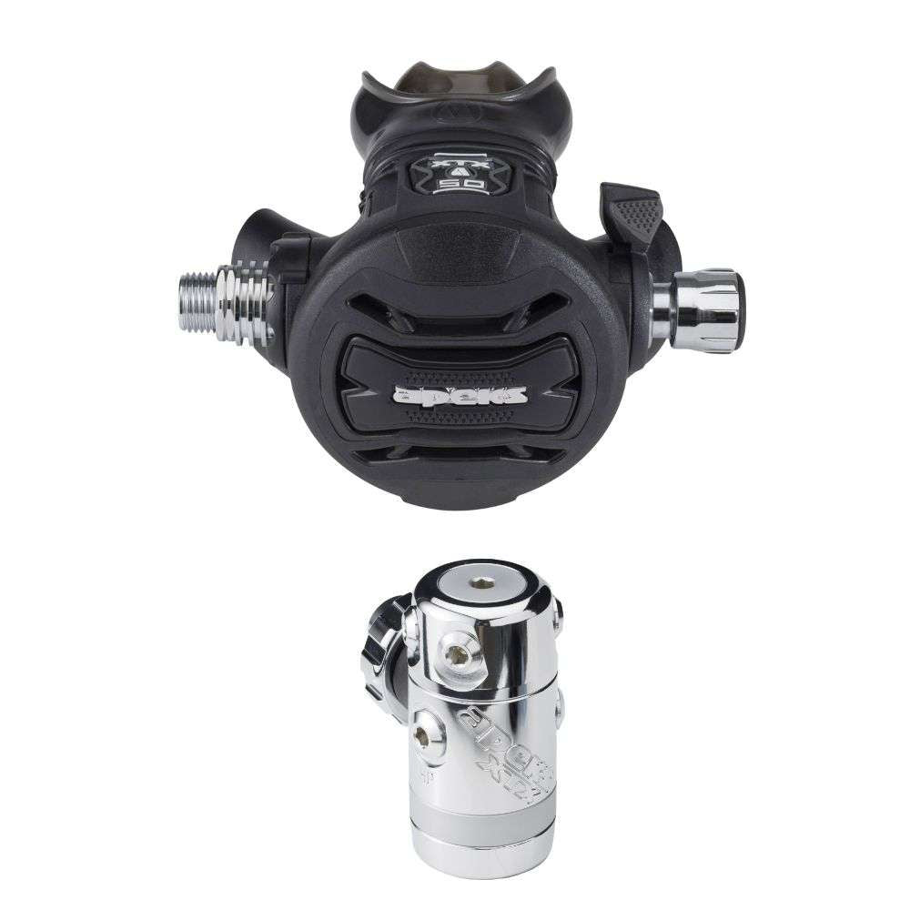 The XTX50 is for the discerning diver who wants the benefits of a feature-rich regulator at a moderate price. This popular regulator has four medium-pressure ports all mounted on a rotating turret, resulting in optimal hose routing while eliminating sharp bends in the hose.