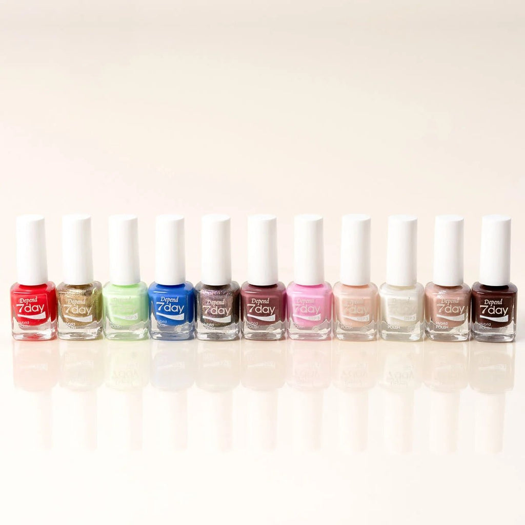 Depend 7day Country Chic 7367 is a durable nail polish in a deeper pink-toned nude that gives the nails a warm and elegant expression. Depend 7day is a hybrid polish for those who want super gloss and a gel-inspired feel without the need for LED or UV. The formula hardens in normal daylight or lamp light and can last up to a week when used together with the other steps of the 7day system. The wide brush is flexible and makes it easy to apply an even layer with professional results. The bottle has clear symbols that show the degree of coverage so you can quickly see what effect the color gives.