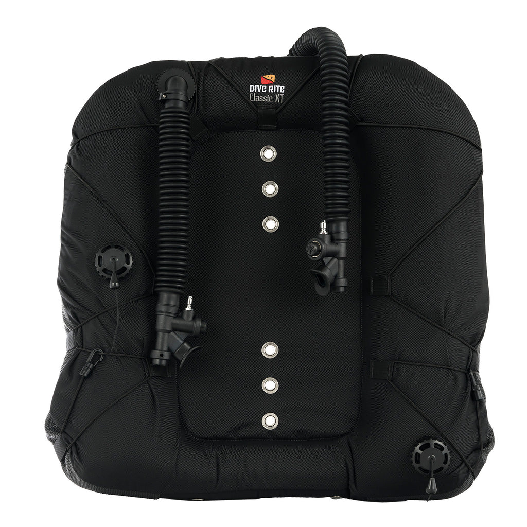 Built for double tanks with 60 pounds of lift, the Classic XT Wing effortlessly supports heavy gear while ensuring perfect trim and control underwater. The donut-shape design, paired with an optional Gusset Control System, provides stability and streamlining without restricting airflow. Crafted with SuperFabric® XT material and a 210 denier laminated bladder, the Classic XT can take on even the toughest environments. Whether you’re navigating deep cave systems or exploring shipwrecks, this wing—backed by our Worry-Free Lifetime Guarantee—delivers unmatched reliability and performance. As a part of our modular BCD system, the Classic XT Wing can be matched with either a TransPac®, TransPlate, or any metal back plate and webbing harness. Comes with a 15, 22, or 27-inch LP inflator hose and a 16-inch rapid exhaust (pull-dump) or 12 or 16-inch elbow. Made in the USA.