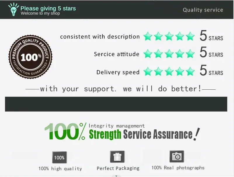 SHIPPINGWe will ship your order within 72 hours after the payment. Thanks for your patience and support. We use high-quality logistics, which has the advantages of fast speed, good service, and safety. Please refer to the "Estimated Delivery Time" on the purchase interface for the delivery time. We promise to arrive before this time. Based on past experience, the actual delivery time will be much earlier than the estimated delivery time.