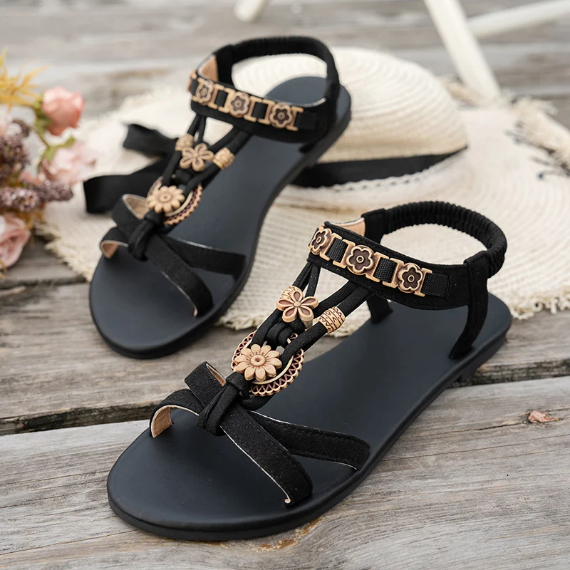- shoes type : bohemian flower decor flat sandals for women