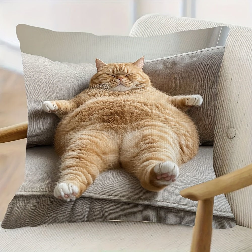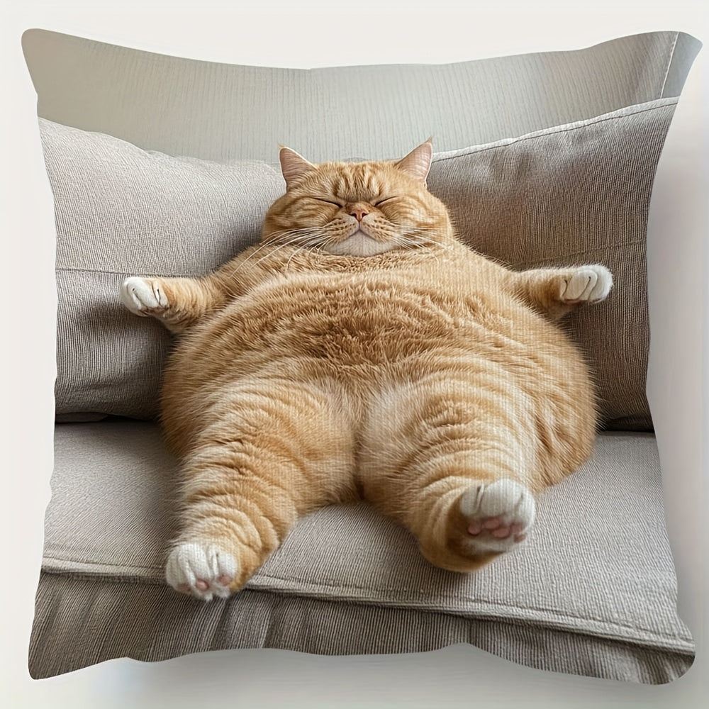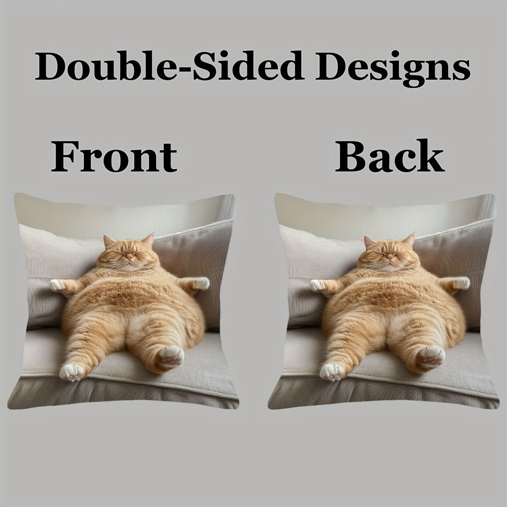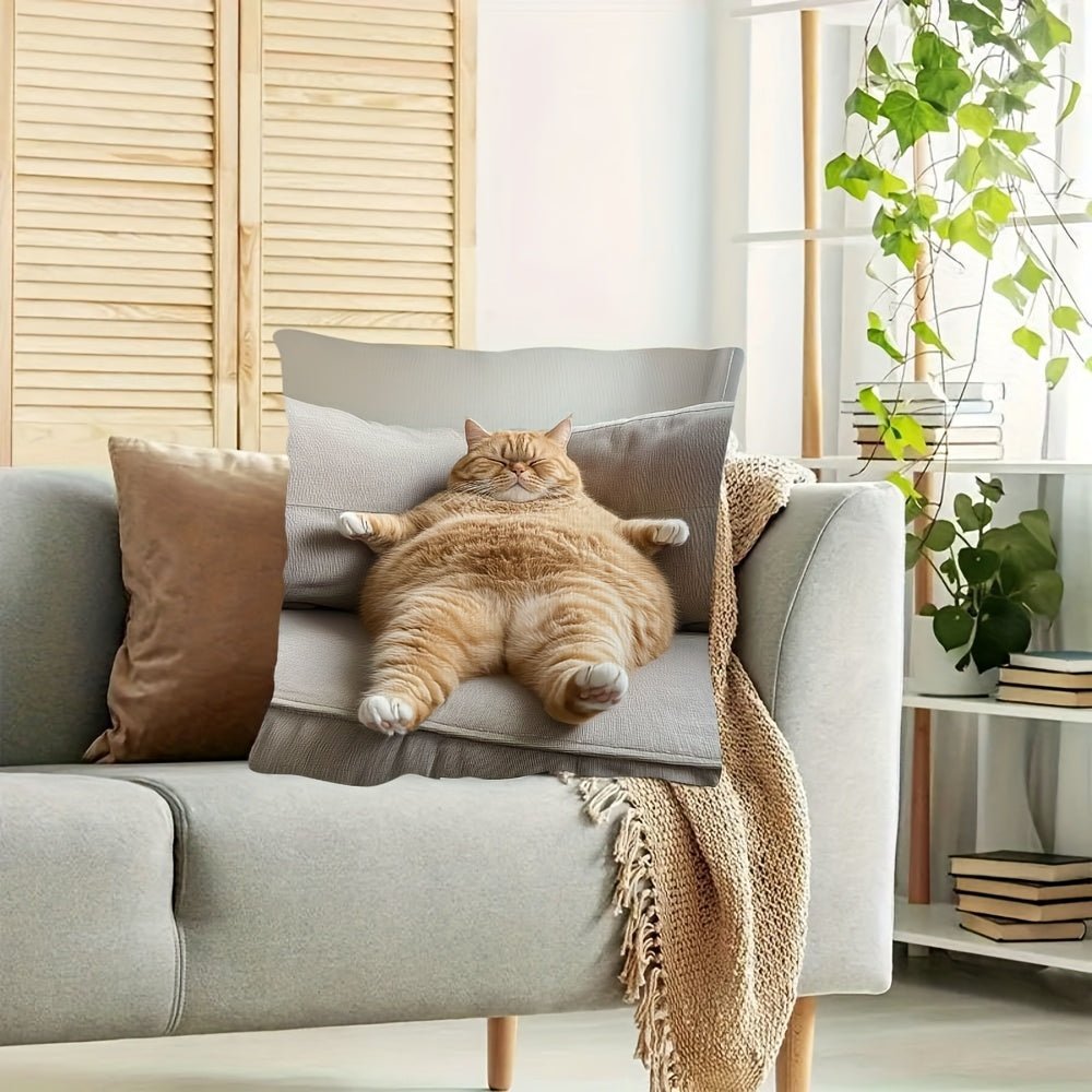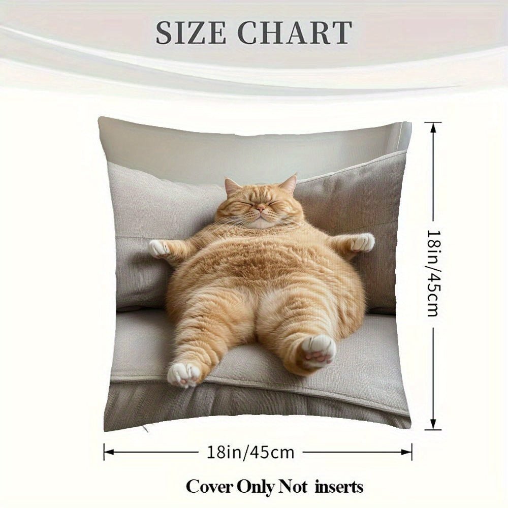 [Ginger Cat Throw Pillow] 1pc 18x18 Inch Super Soft Short Plush Double-Sided Throw Pillow - Adorable Ginger Cat Lounging on Sofa Design, Contemporary Home Decor for Living Room & Bedroom, Machine Washable with Zipper Closure (No Insert), Bedroom Comfort,