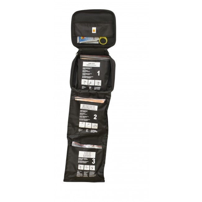 Housegard First Aid Bag Compact is a handy first aid kit that is easy to keep close at hand. Despite its compact size, the bag contains a variety of aids for minor injuries.