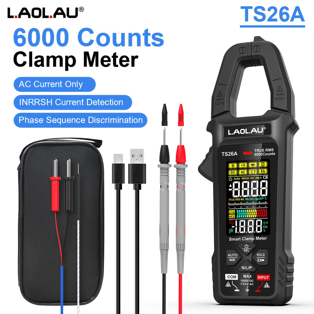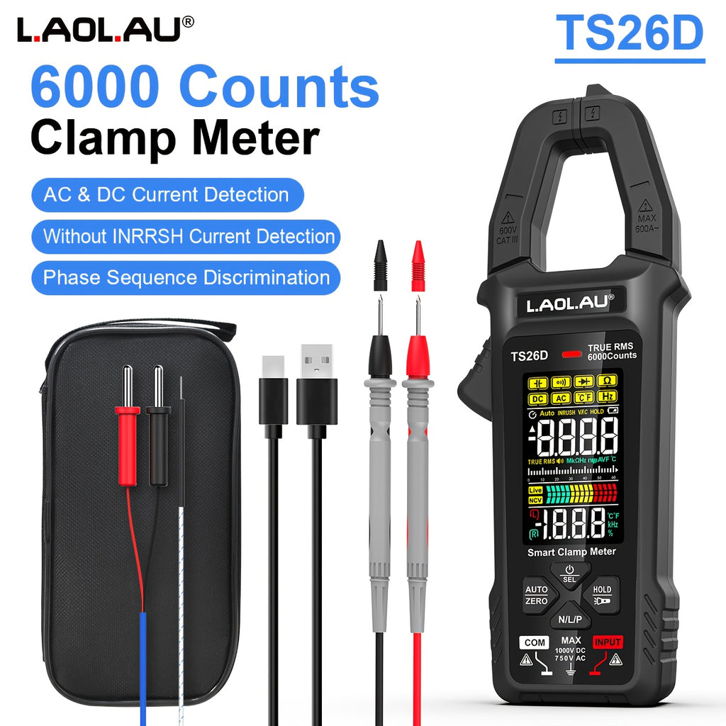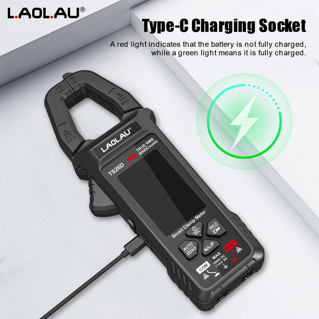 L.AOL.AU 1pc TS26D/TS26A New Digital Clamp Multimeter - Rechargeable Auto-Ranging Multimeter with LCD Display, AC/DC Voltage Current Resistance Capacitance Temperature Measurement - for Lab, Factory & Home