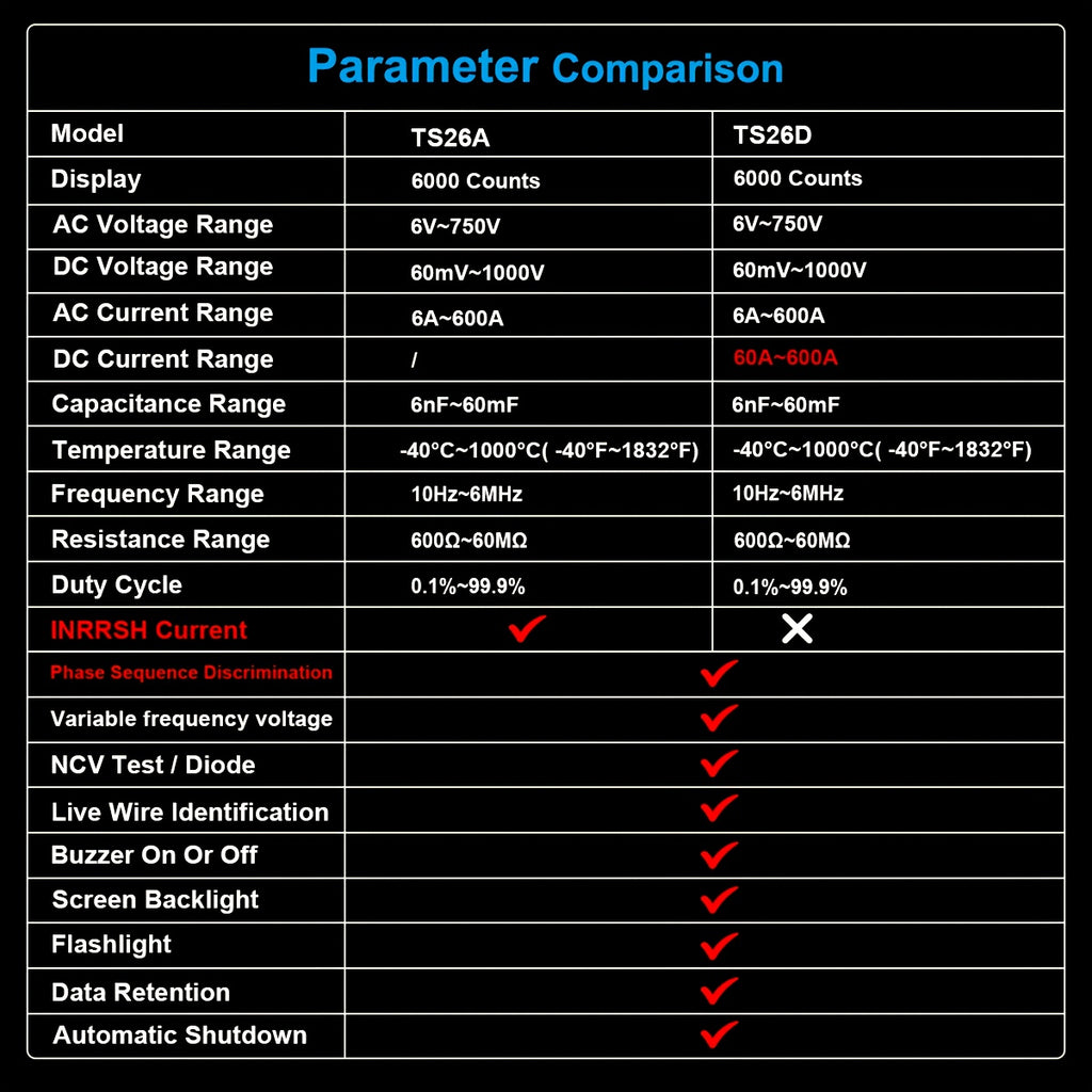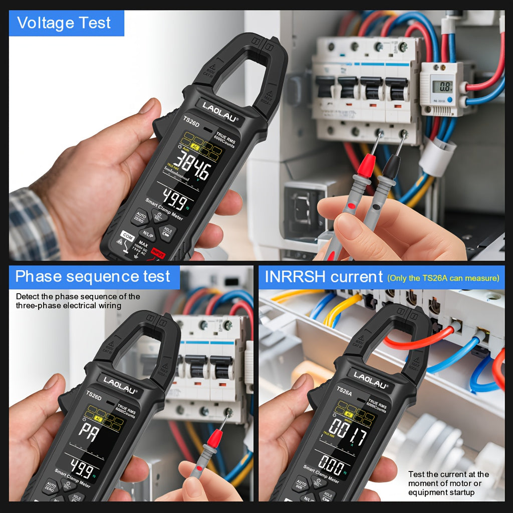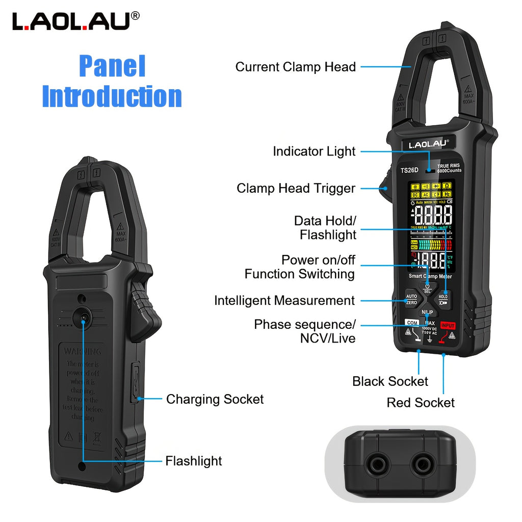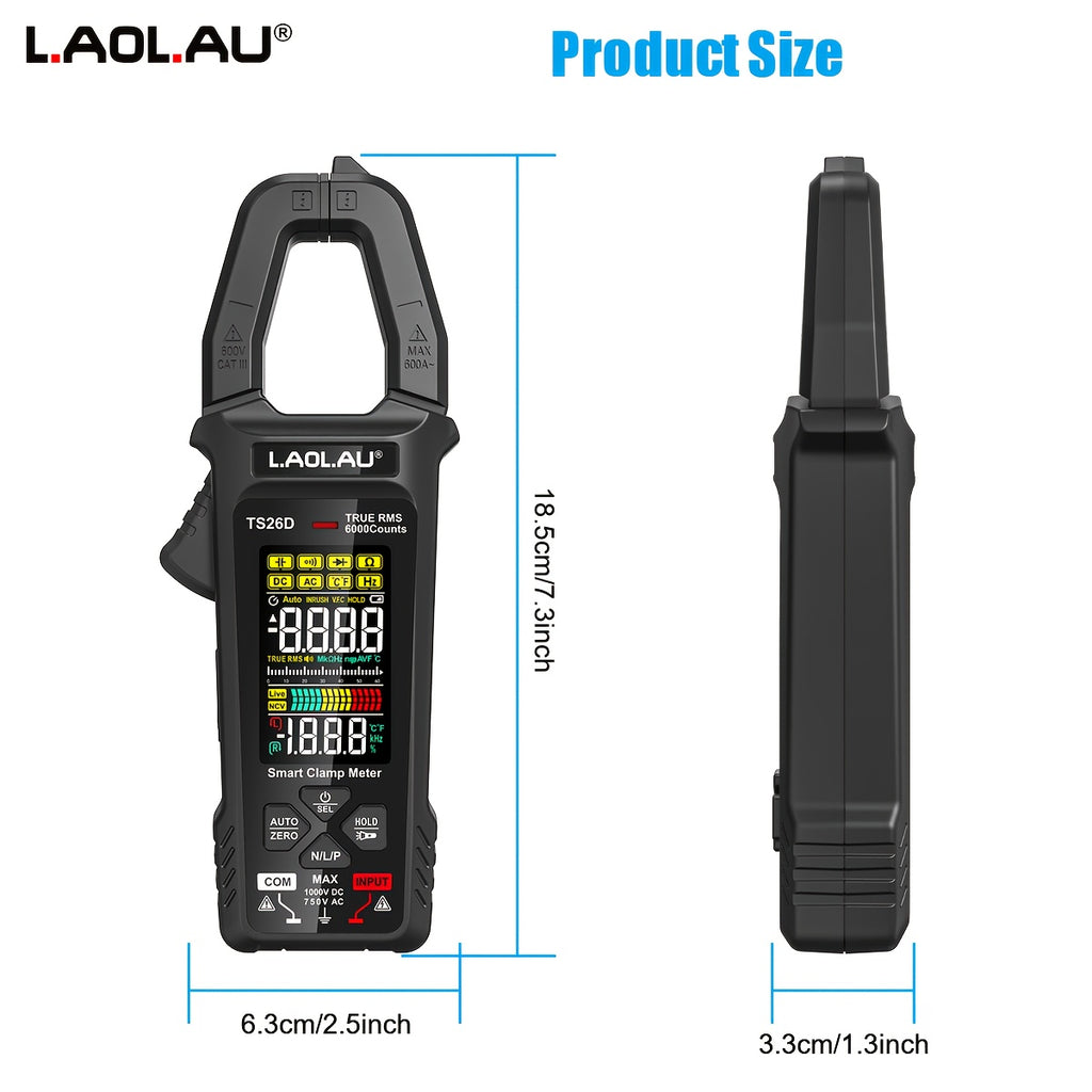 L.AOL.AU 1pc TS26D/TS26A New Digital Clamp Multimeter - Rechargeable Auto-Ranging Multimeter with LCD Display, AC/DC Voltage Current Resistance Capacitance Temperature Measurement - for Lab, Factory & Home
