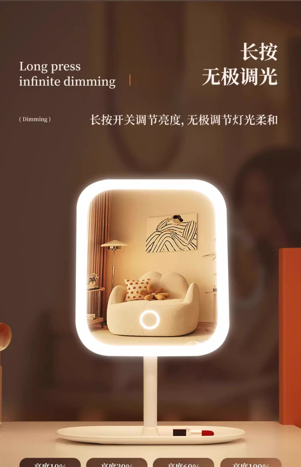 [Lit Lighting] Get ready for that chef's kiss lighting. This LED Smart Vanity Mirror has a built-in LED light, so you can say goodbye to those harsh shadows. This is a total game-changer when you're trying to contour or apply eyeliner with precision. Plus, you can adjust the brightness to match your surroundings. Because trust, nobody wants to walk outside looking like a clown. The high-quality LEDs ensure even and natural light distribution, so you look snatched in any environment. No cap, this is the best makeup mirror ever.