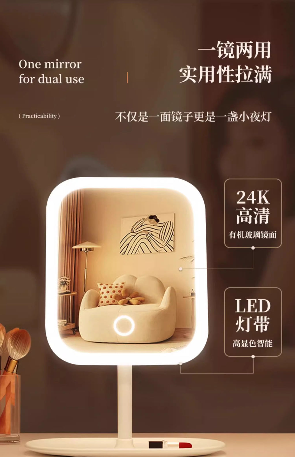 [Built to Last] This vanity mirror is made with high-quality materials that are designed to last. No flimsy plastic here! The ABS frame is durable and sturdy, so you can trust that it will hold up to everyday use. You won't have to replace it anytime soon. It's an investment that'll pay off every time you use it.