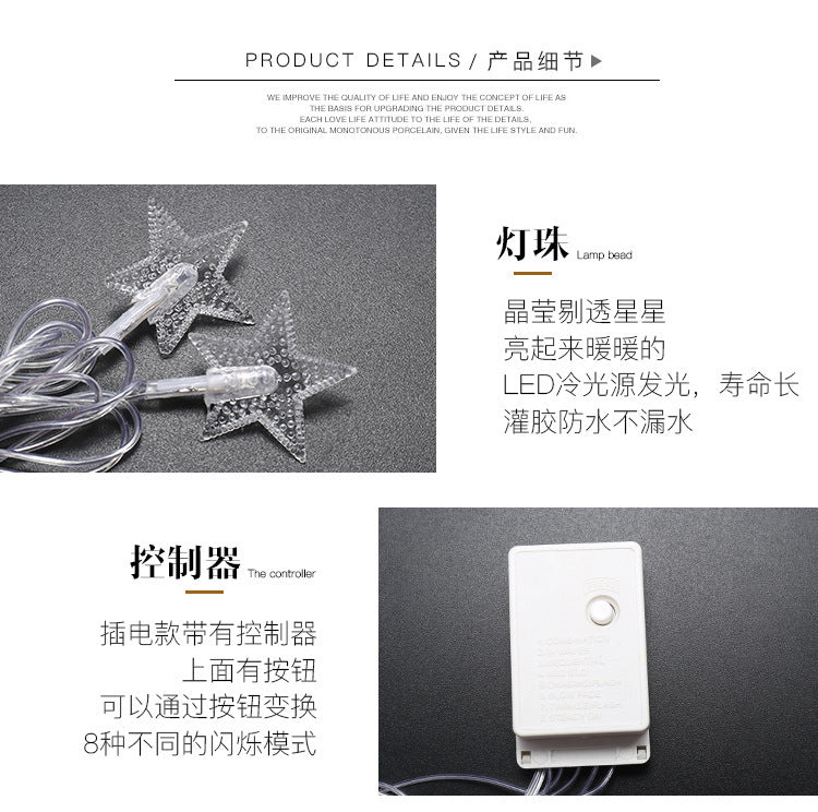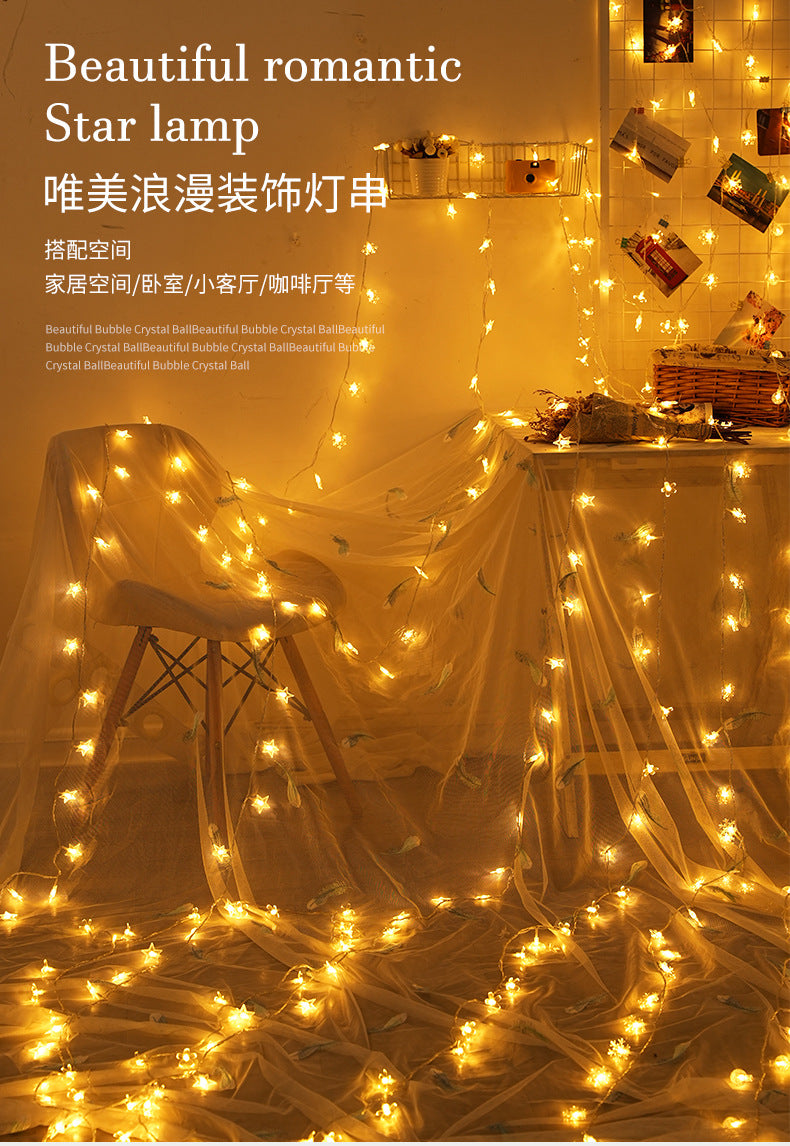 | Light Color | Star Warm, Star Rainbow, White Ball Warm, White Ball Rainbow, Crystal Ball + Star Warm, Crystal Ball + Star Rainbow, Star + Ball Warm, Star + Ball Rainbow, Small Bubble 1.8CM Warm, Small Bubble 1.8CM Rainbow, Moon Star Warm, Moon Star Rainbow, Sakura Warm, Sakura Rainbow, Big Bubble 2.3CM Warm, Big Bubble 2.3CM Rainbow |