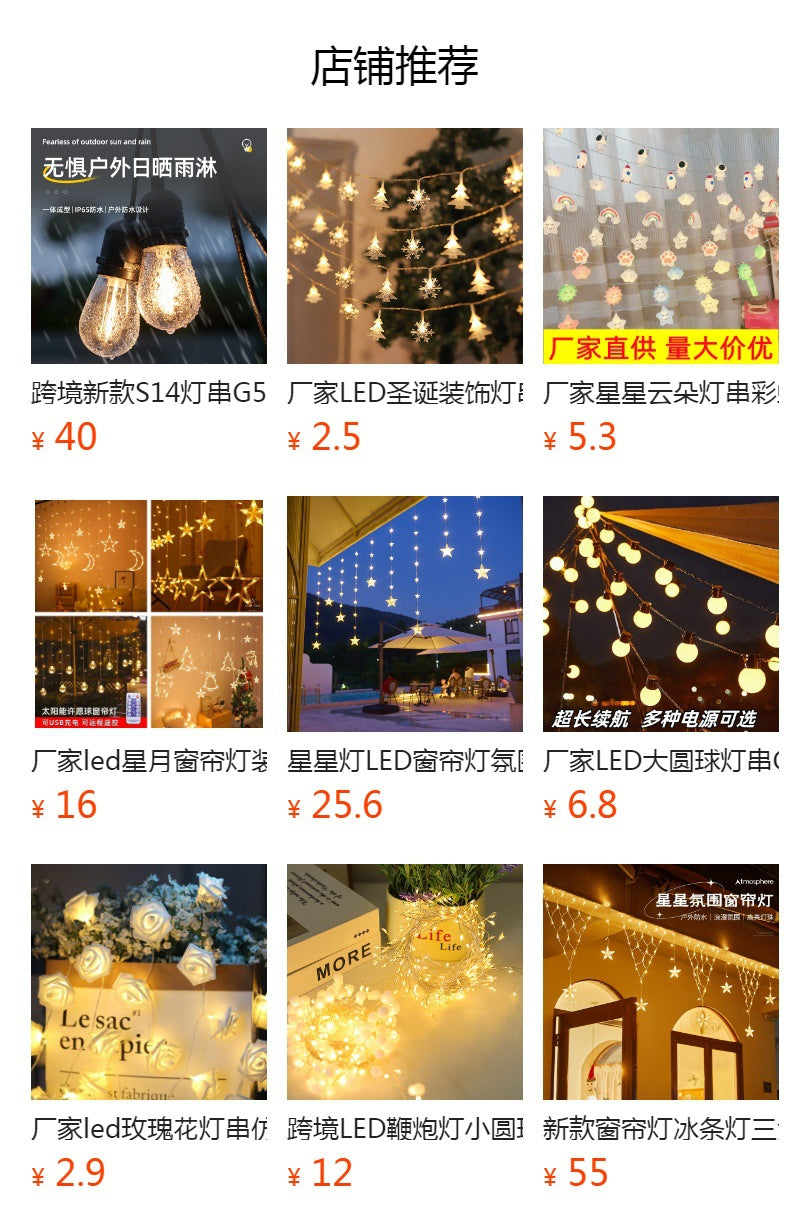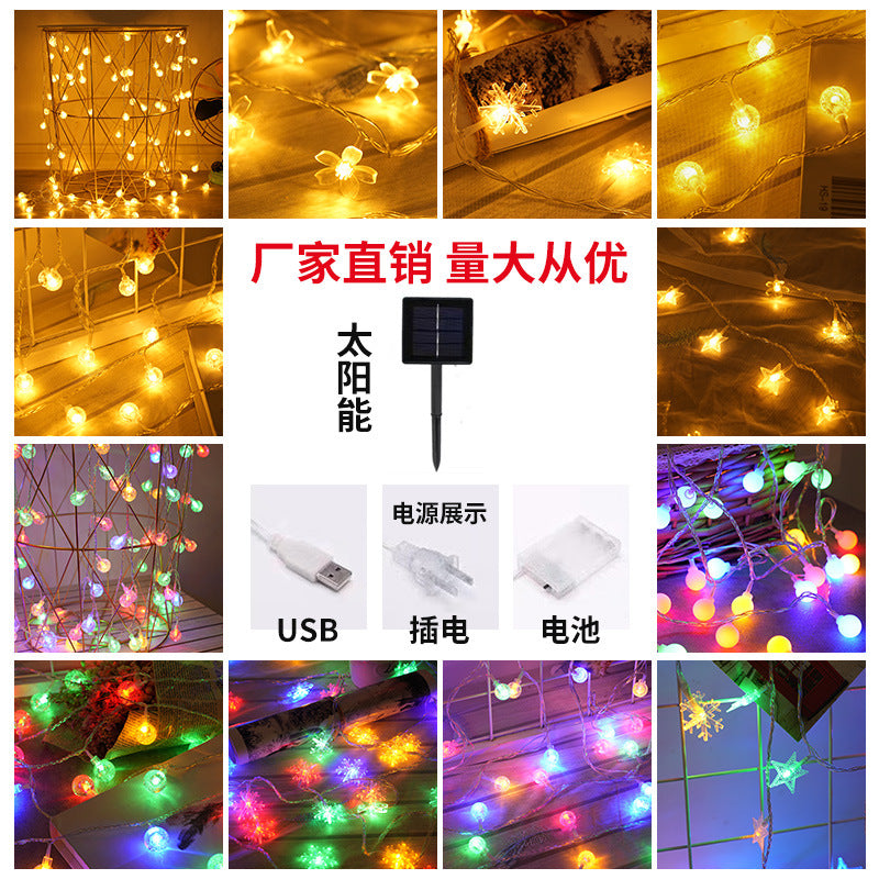 | Power | 1.5M 10 Lights (Battery Powered), 3M 20 Lights (Battery Powered), 6M 40 Lights (Battery Powered), 10M 80 Lights (Battery Powered), 5M 50 Lights (Waterproof Battery + Remote), 10M 100 Lights (Waterproof Battery + Remote), 10M 100 Lights (USB + Remote), 10M 100 Lights (Plug-in), 20M 200 Lights (Plug-in), 30M 300 Lights (Plug-in), 12M 100 Lights (Solar), 22M 200 Lights (Solar), 32M 300 Lights (Solar + USB), 52M 400 Lights (Solar + USB), 6M 40 Lights (USB), 10M 80 Lights (USB) |