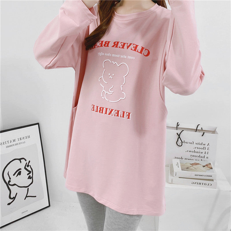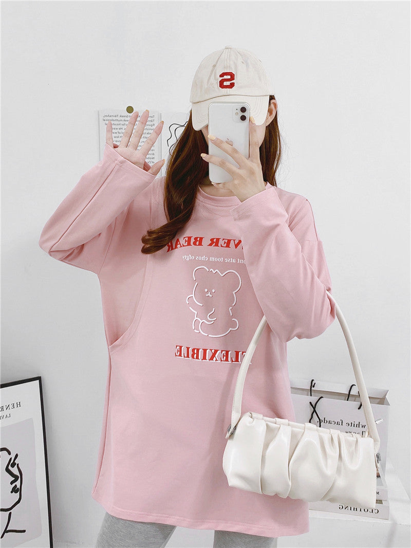 This nursing tee isn't just comfy, it's secretly a superhero in disguise. The genius design allows for easy and discreet access for breastfeeding or pumping. We're talking zero fuss, maximum efficiency. No more awkward struggles in public – just effortless feeding whenever and wherever your little one needs it. And let's be real, a happy baby means a happy you, and that's the real goal, right? Plus, it looks good layered under a cardigan, or worn alone with jeans or leggings. It's versatile, stylish, and practical – basically, everything you could ever want in a top. So, ditch the frumpy maternity clothes and level up your wardrobe with this must-have piece. Trust me, your future self will thank you. This maternity clothing item has got you covered.