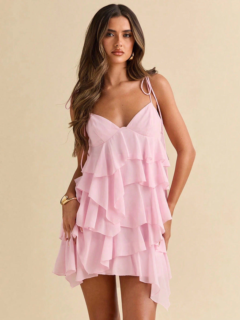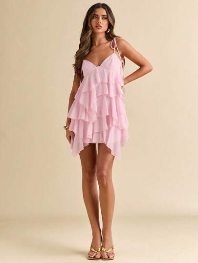 OMG, this dress is literally everything! ✨ It's giving major main character energy, whether you're hitting up a festival, vibing on vacay, or even standing up for your bestie at her wedding – like, yas queen! This baby pink dream is the perfect mix of cute and classy, so you can rock it anywhere. The spaghetti straps and backless design are super flirty, while the layered/tiered hem adds a touch of sophistication. Plus, it's comfy AF thanks to the loose fit and woven fabric. Say goodbye to stiff, uncomfortable dresses and hello to all-day style and comfort. This slaps for any occasion, so make sure to add it to your cart!