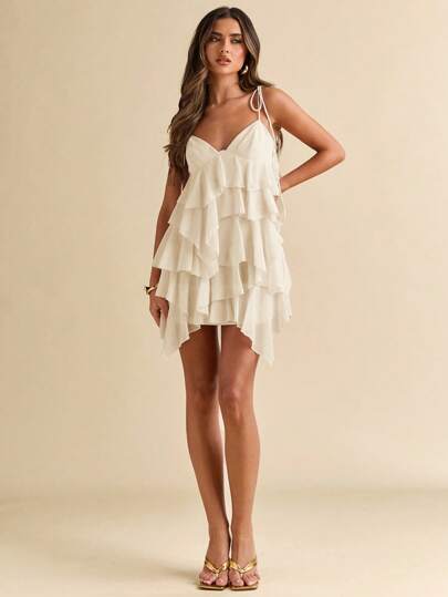 | Details | Asymmetrical, Backless, Tiered Layer, Zipper |
