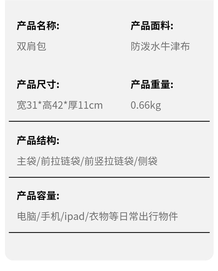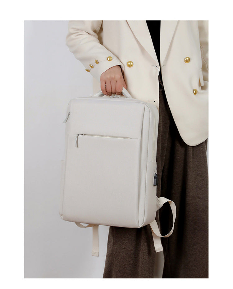 Okay, listen up bestie, because this is not just some basic backpack. This is the backpack. It's crafted from super durable oxford cloth that can handle all your adventures, from chaotic commutes to weekend getaways. Forget those flimsy bags that fall apart after a month; this one's built to last, period. We're talking serious water resistance, so your precious laptop and notes stay dry even when the weather's sus. The design is sleek and minimalist, perfect for leveling up your look whether you're heading to class, crushing it at work, or just chilling with your friends. Plus, with multiple color options from classic black and gray to trendy lavender and creamy white, you can find the perfect vibe to match your aesthetic. No cap, this backpack is a total game changer.