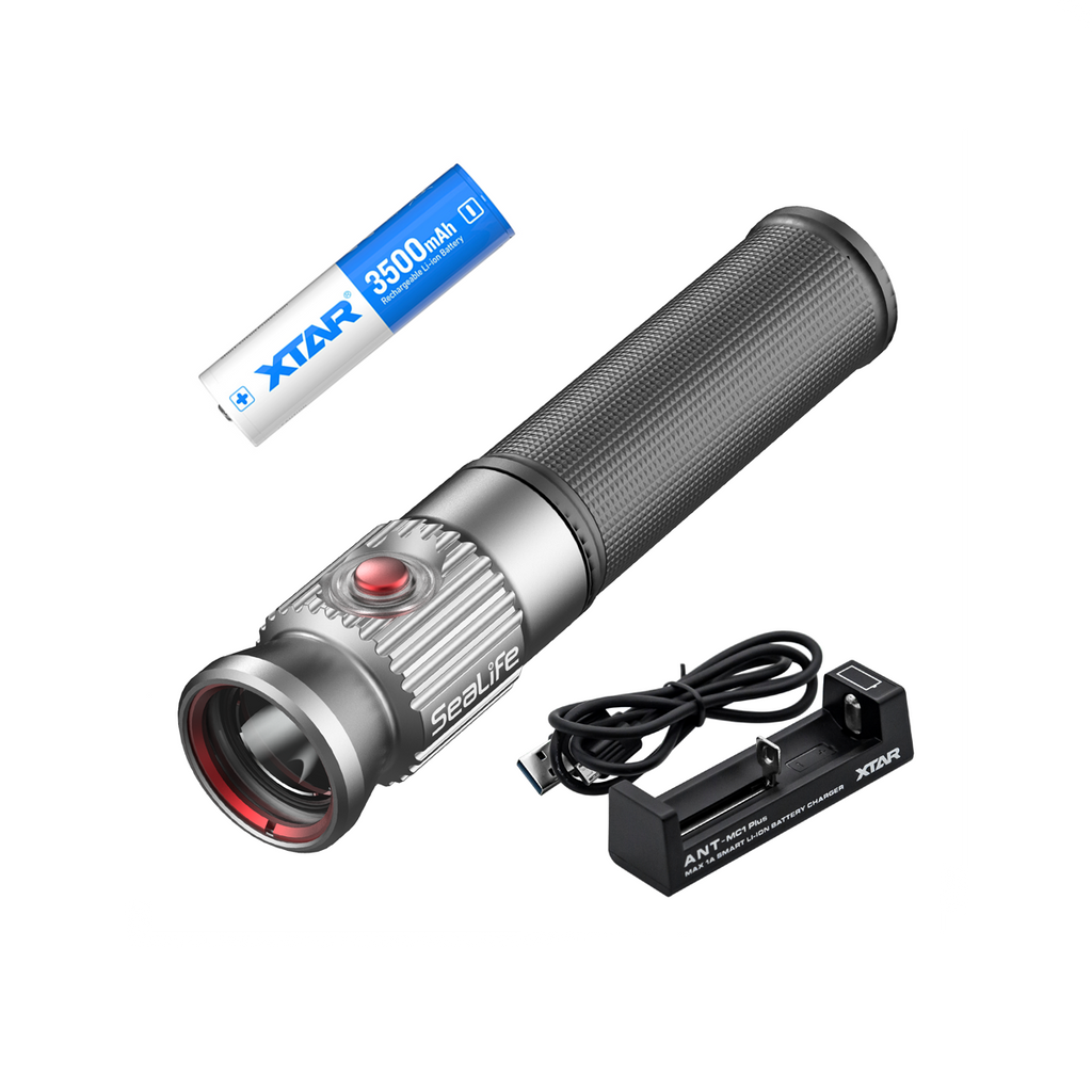 Compact enough to fit comfortably in your hand, the Sea Dragon Mini 1200 also has a long battery life. On a 3500mAh rechargeable 18650 Li-ion battery, it operates for up to 6 hours at a quarter of power, or 1.5 hours at full power. The battery compartment is also equipped with an integrated safety valve for pressure relief. With a beam angle of 8° (6° underwater), the powerful 1200-lumen light is perfect for pointing out marine life at a distance, illuminating dark areas or crevices, attracting the attention of your dive buddy or navigating during a night dive.