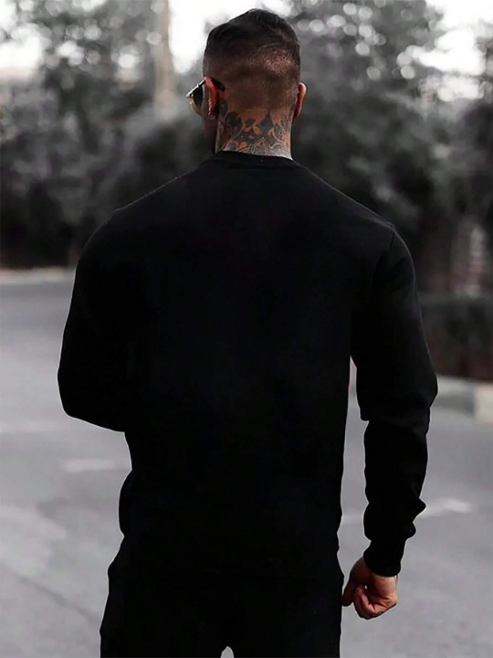 Color: Black Style: Casual Type: Pullovers Pattern Type: Letter Neckline: Round Neck Sleeve Length: Long Sleeve Sleeve Type: Regular Sleeve Length: Regular Fit Type: Regular Fit Fabric: Slight Stretch Material: Fabric Composition: 100% Polyester Care Instructions: Machine wash or professional dry clean Temperature: Spring/Fall 18-25℃/63-77℉ Sheer: No