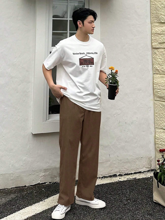 Color: Coffee Brown Style: Casual Pattern Type: Plain Details: Drawstring, Pocket Type: Straight Leg Closure Type: Elastic Waist Waist Line: Natural Length: Long Fit Type: Loose Fabric: Slight Stretch Material: Corduroy Composition: 95% Polyester, 5% Elastane Care Instructions: Machine wash or professional dry clean Temperature: Spring/Fall 18-25℃/63-77℉ Body: Unlined Sheer: No