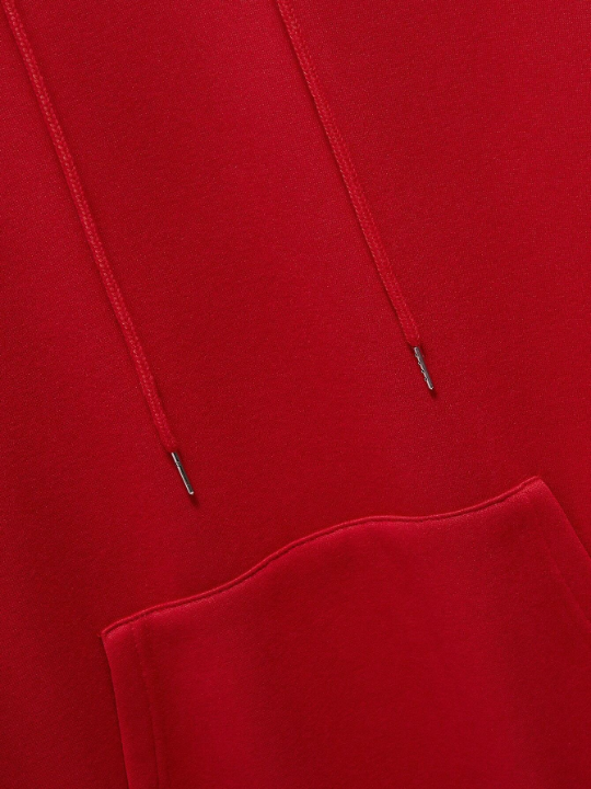 Color: Red Style: Casual Type: Pullovers Pattern Type: Plain Details: Drawstring, Pocket Neckline: Hooded Sleeve Length: Long Sleeve Sleeve Type: Regular Sleeve Length: Regular Fit Type: Loose Fabric: Slight Stretch Material: Fabric Composition: 100% Polyester Care Instructions: Machine wash or professional dry clean Temperature: Late Fall 10-17℃/50-63℉ Lined For Added Warmth: Yes Sheer: No