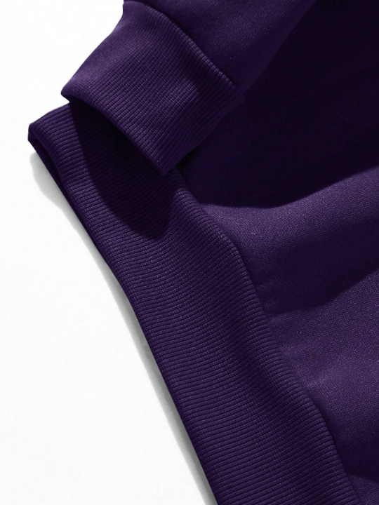 Color: Purple Style: Casual Type: Pullovers Pattern Type: Plain Neckline: Round Neck Sleeve Length: Long Sleeve Sleeve Type: Drop Shoulder Length: Regular Fit Type: Loose Fabric: Medium Stretch Material: Fabric Composition: 100% Polyester Care Instructions: Machine wash or professional dry clean Temperature: Late Fall 10-17℃/50-63℉ Lined For Added Warmth: Yes Sheer: No