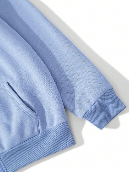 Color: Baby Blue Style: Casual Type: Zip Up Pattern Type: Colorblock, Geometric, Letter Details: Drawstring, Pocket, Zipper Neckline: Hooded Sleeve Length: Long Sleeve Sleeve Type: Drop Shoulder Length: Regular Fit Type: Regular Fit Fabric: Slight Stretch Material: Knitted Fabric Composition: 100% Polyester Care Instructions: Machine wash or professional dry clean Temperature: Late Fall 10-17℃/50-63℉ Pockets: Yes Sheer: No