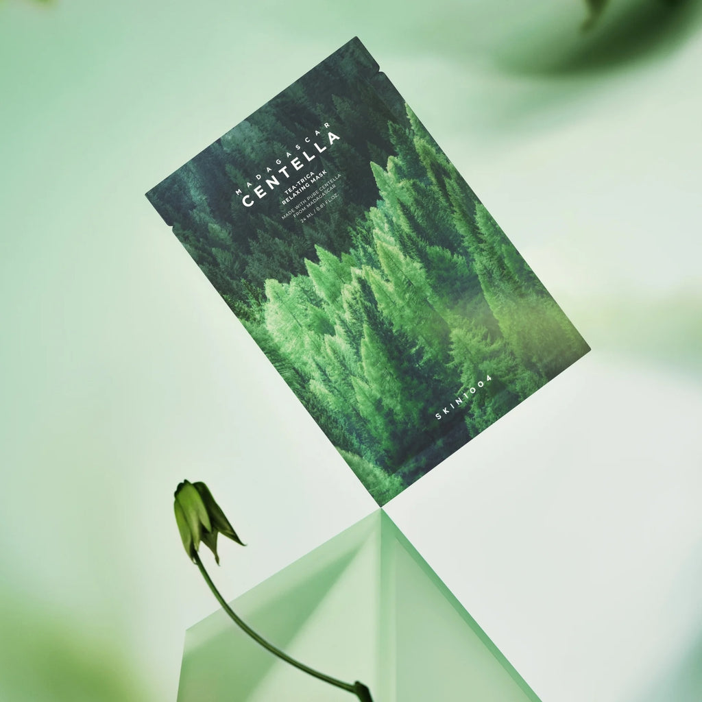 SKIN1004 Madagascar Centella Tea-Trica Relaxing Mask is a cooling and moisturizing sheet mask that helps the skin feel calmer, fresher and more balanced. It is developed for oily, combination or sensitive skin that easily becomes shiny or feels unbalanced and is perfect when the skin needs a refreshing break.