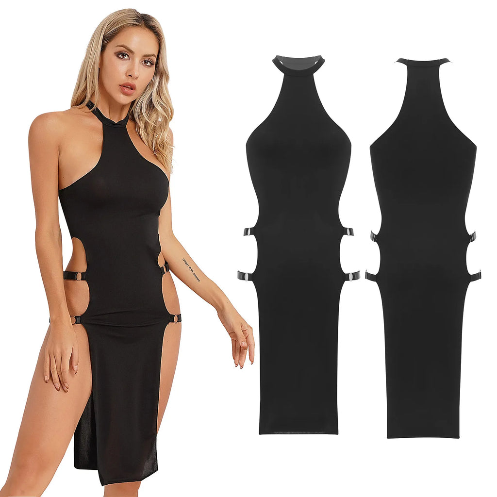 Sexy Pole Dance Costume Summer Black Adjustable Strappy High Cut Dresses Party Club
