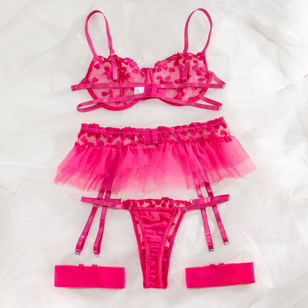 Valentines Sexy Embroidered Mesh And Lace Lingerie Set