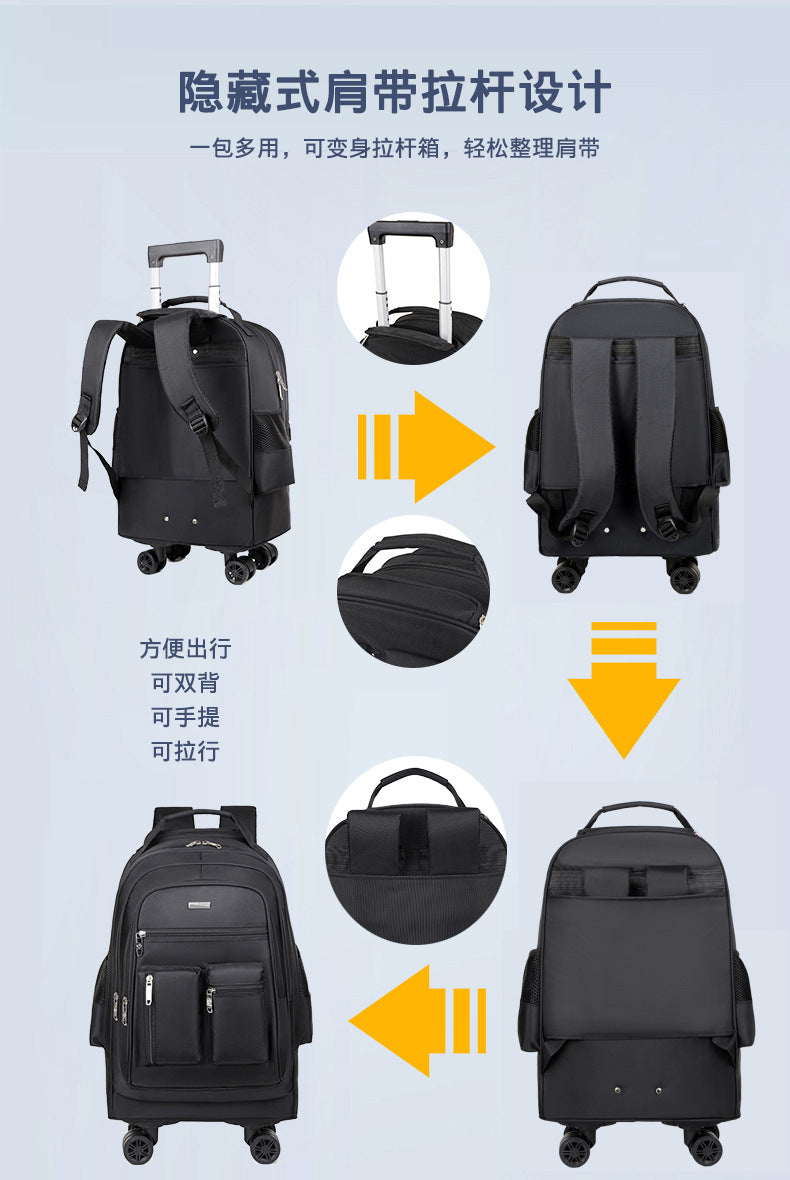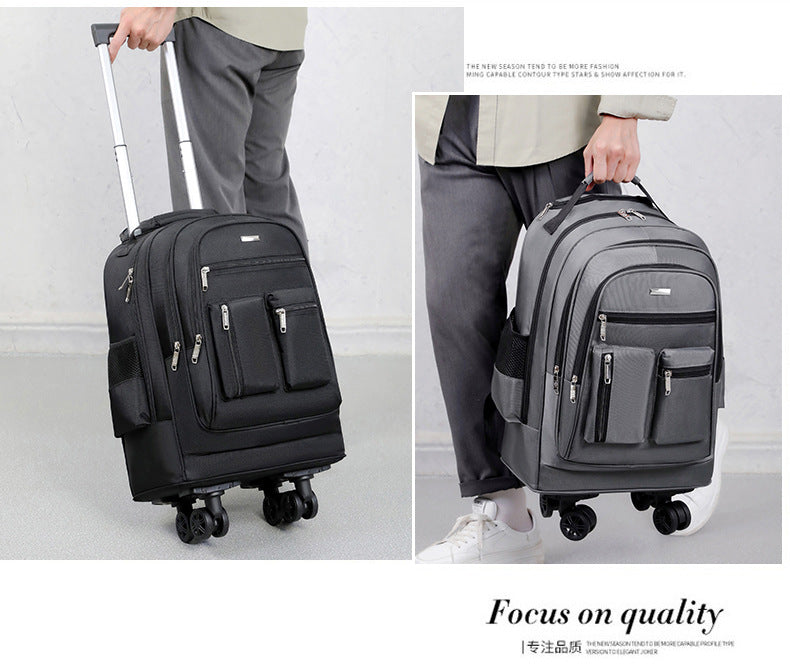 It's crafted from super durable oxford cloth, so it can handle all your daily adventures without falling apart or looking worn out. And the best part? It’s designed to be unisex, so anyone can rock it. This versatile wheeled backpack isn't just a bag; it’s a whole mood. Think of it as your trusty sidekick, ready to take on the world with you. It even fits a 16-inch laptop! The interior lining? Durable polyester to protect your items from the inside. We're talking maximum practicality and style all rolled into one. It's got a 20-35L capacity so you can pack everything, but still lightweight so that you look good. A new product from the Fall of 2024, make sure that you buy one now while supplies last.