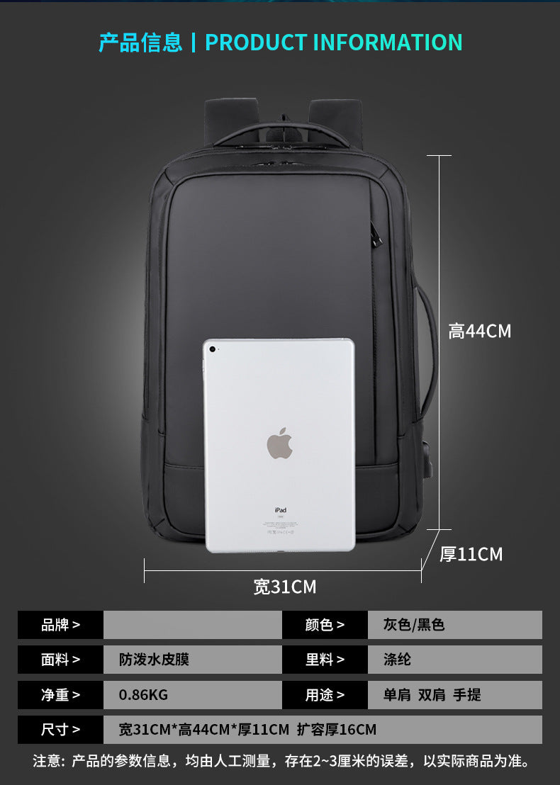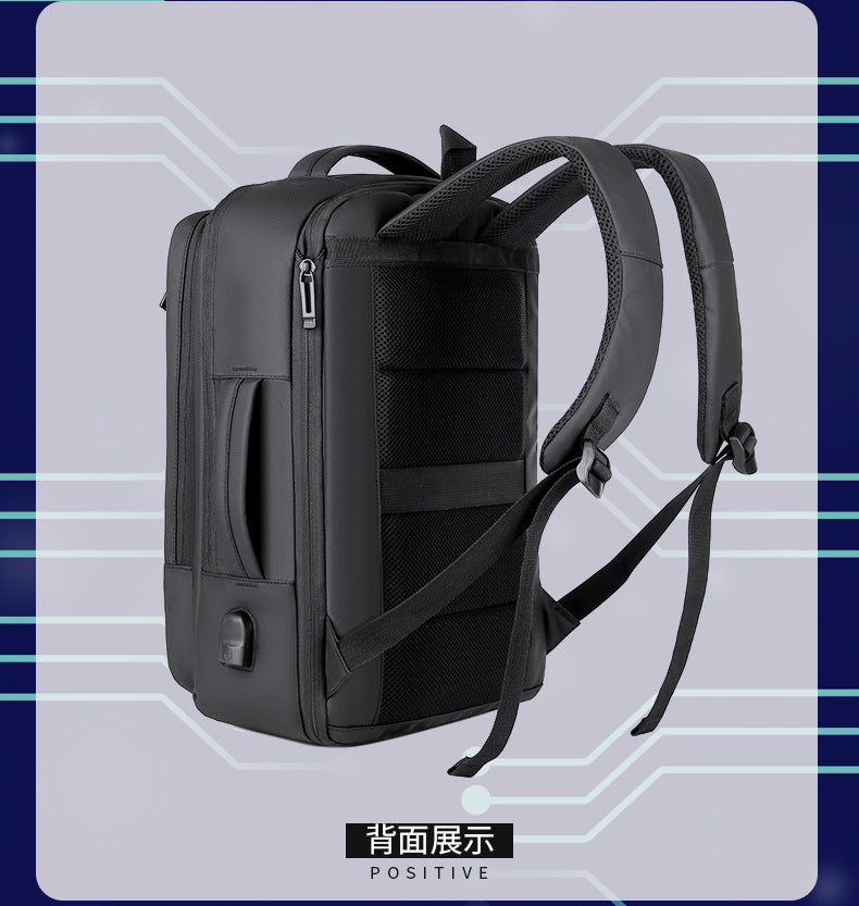 [Ergonomic Straps:] Experience the ultimate comfort with air cushion straps that distribute weight evenly across your shoulders and back. No more achy shoulders or back pain, even when you're carrying a ton of stuff. These straps are like a hug for your body, making even the heaviest loads feel like you're carrying air. This means you can focus on conquering your day without being weighed down, literally. The backpack is a must-have essential for any travel!