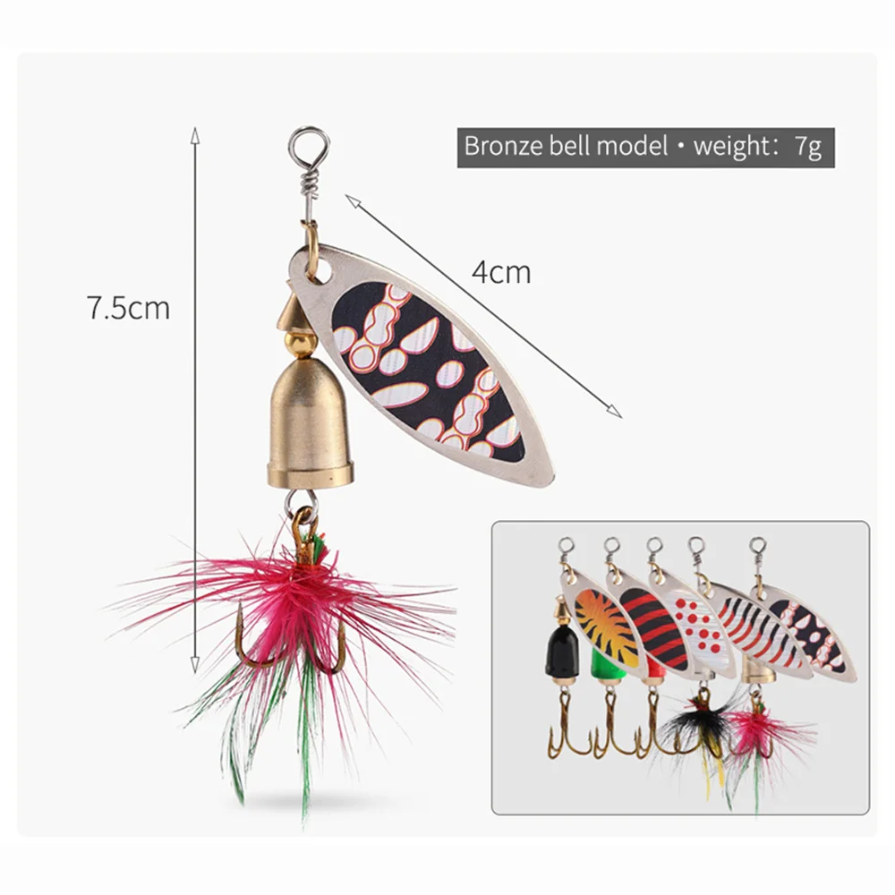 5pcs Fishing Lure Spinner bait, Bass Trout Salmon Hard Metal Spinner Baits Kit with Tackle Boxes
