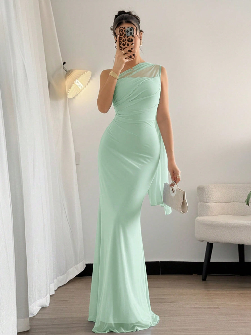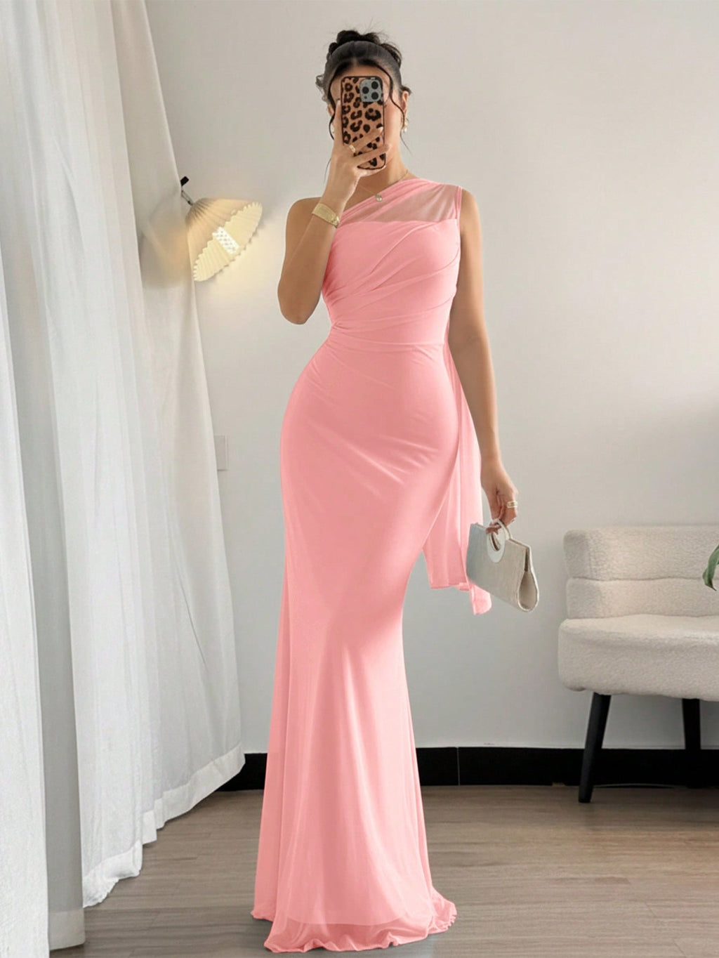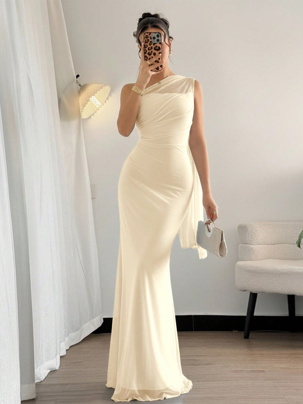 Elegant Romantic Fashion Commuter Sexy Elegant Style Asymmetrical Neck Bodycon Maxi Dress, Suitable For Party, Beach Vacation, Back To School, Romantic Date, Wedding Season, Birthday, Easter, Spring/Summer Dress Formal Dresses For Wedding Guest,Wedding Gu