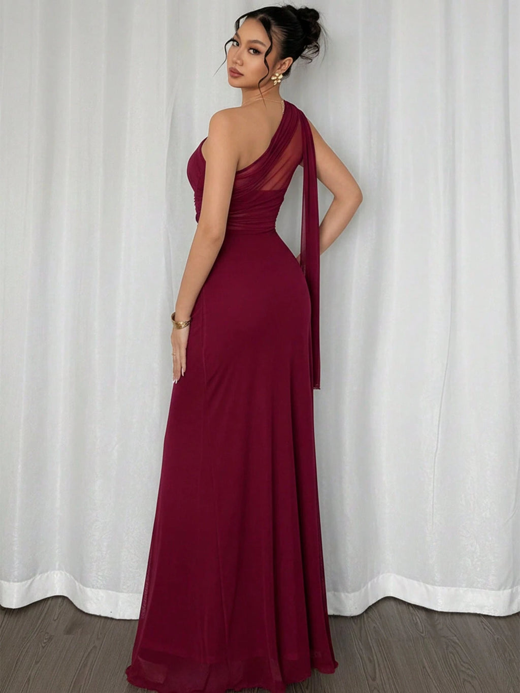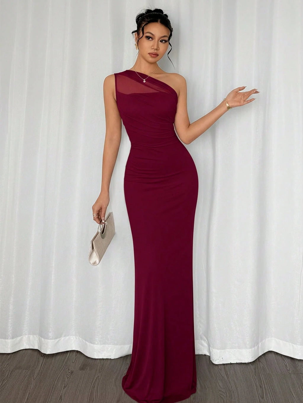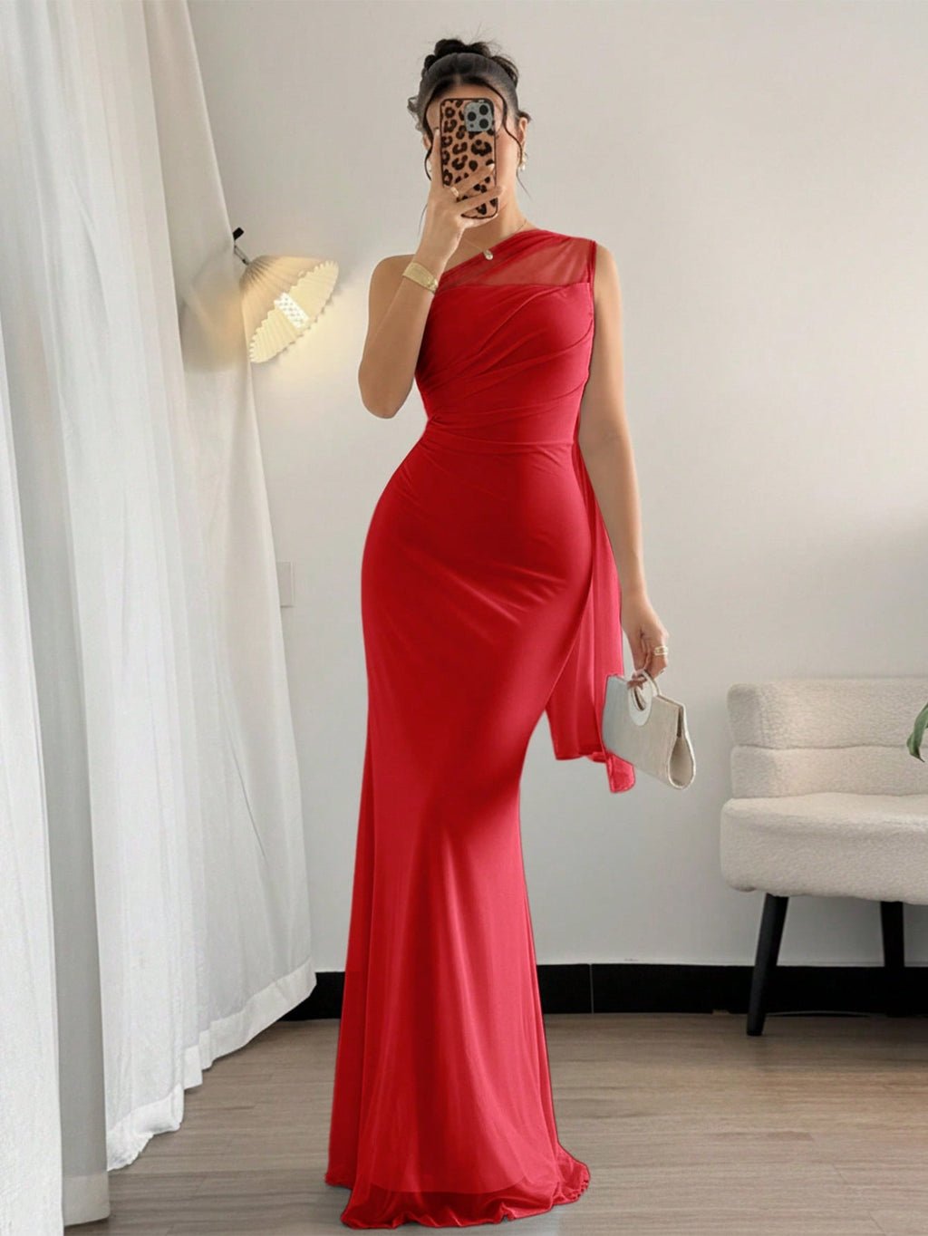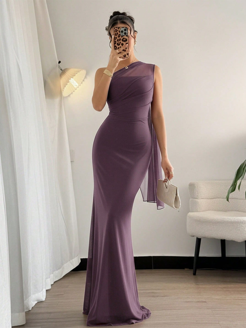 Elegant Romantic Fashion Commuter Sexy Elegant Style Asymmetrical Neck Bodycon Maxi Dress, Suitable For Party, Beach Vacation, Back To School, Romantic Date, Wedding Season, Birthday, Easter, Spring/Summer Dress Formal Dresses For Wedding Guest,Wedding Gu