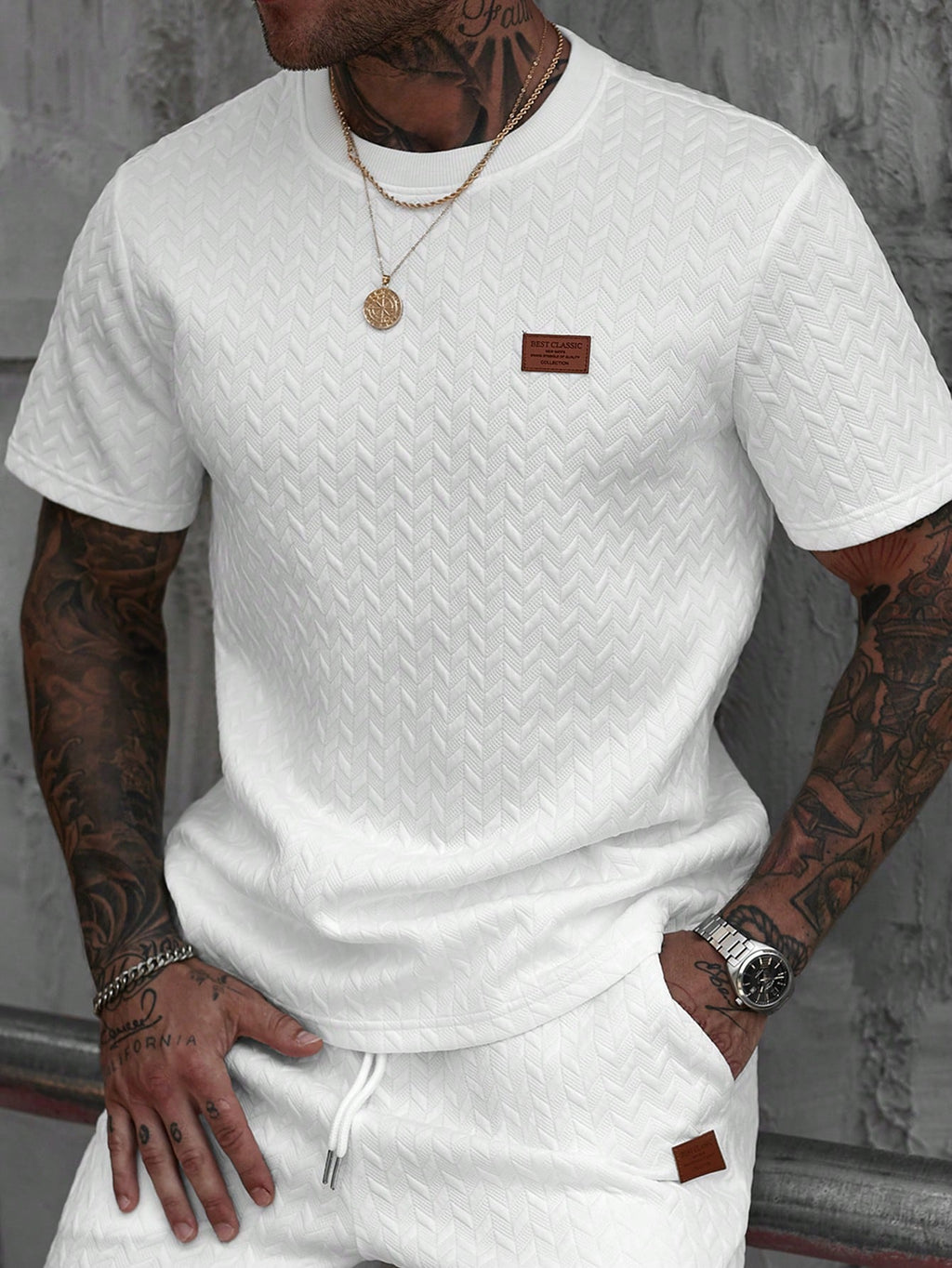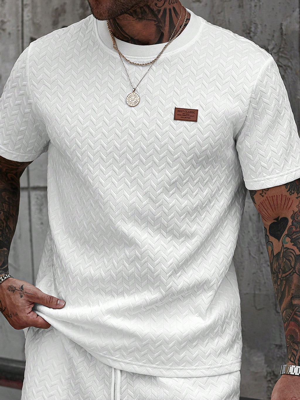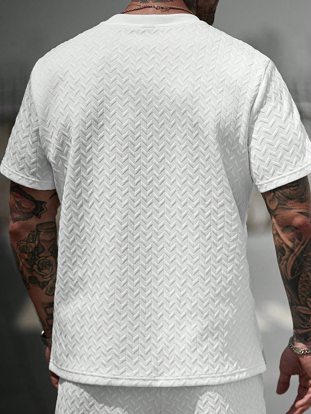 Manfinity CasualCool Men's Summer Jacquard Ribbed Collar Short Sleeve T-Shirt, Fine Gift For Boyfriend Or Husband