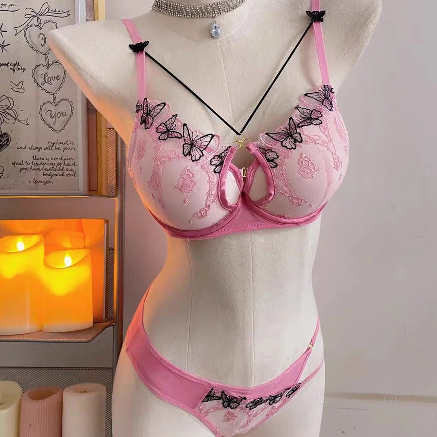 The bra set features a delicate butterfly embroidery, adding a touch of elegance and femininity to your lingerie collection.