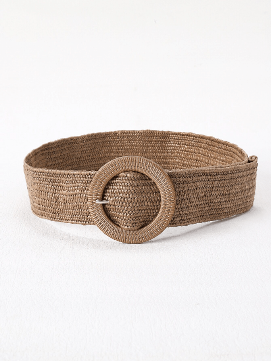 Color: Khaki Style: Boho Buckle Type: Round Belts Width: Wide Belt Type: Straw Belt Stretch: High Stretch Material: PP Composition: 100% Polyester