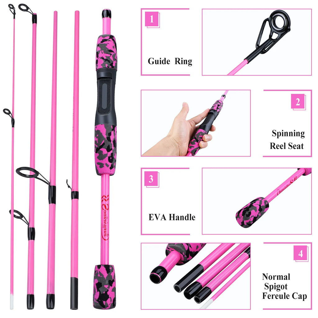 Sougayilang 5 Section Spinning Casting Fishing Rod 1.8M Strong and Lightweight Poles for Travel Freshwater Fishing Pesca