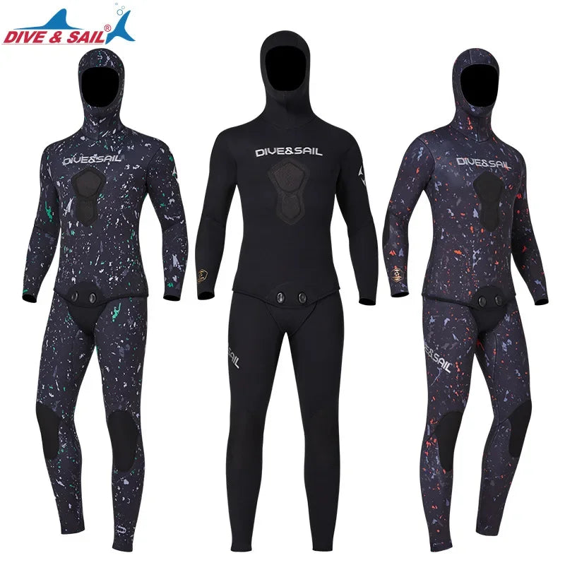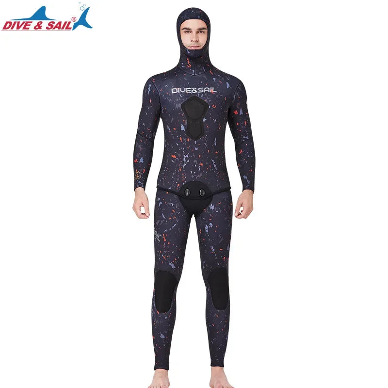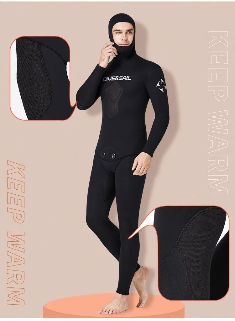 Spearfishing Wetsuits Men 3MM 5MM 7MM Neoprene CR 2-Pieces Hooded Long Sleeve Scuba Diving Full Body Keep Warm Snorkeling Suits