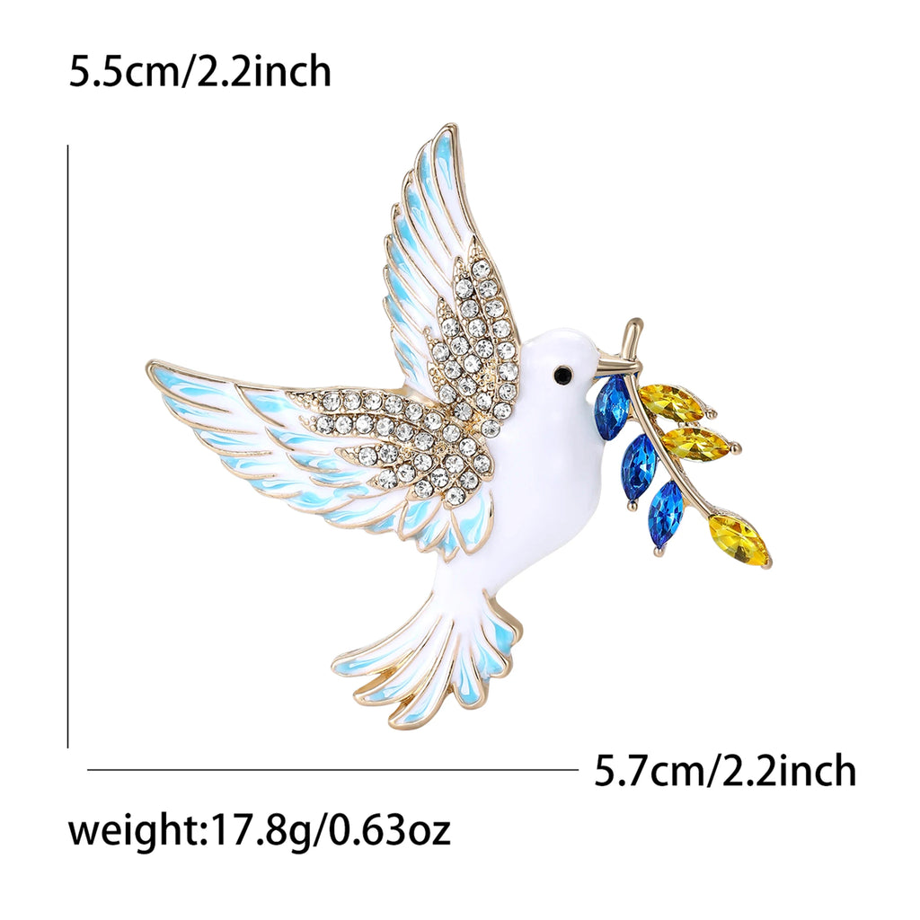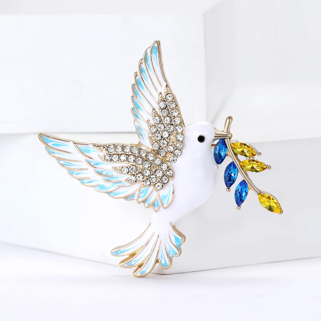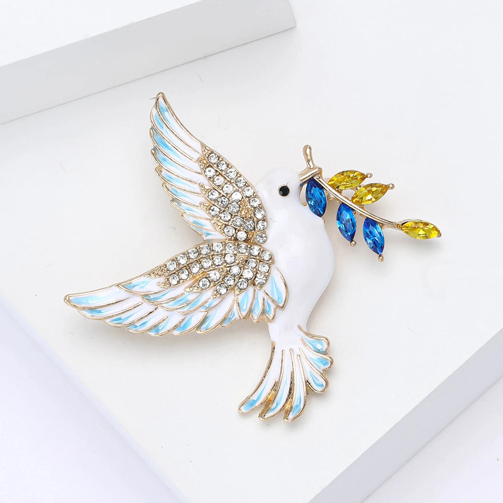Trendy Rhinestone Bird Brooches for Women Enamel Wheat Pins Unique Design Ukrainian Peace Dove New Year Gifts Accessories